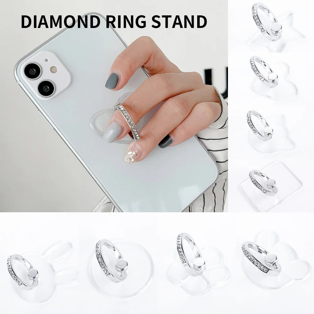 Comprar Soporte de anillo para teléfono móvil, agarre de dedo transparente con diamante, transparente 360 ° Giro de grado para accesorio de montaje de soporte de teléfono móvil