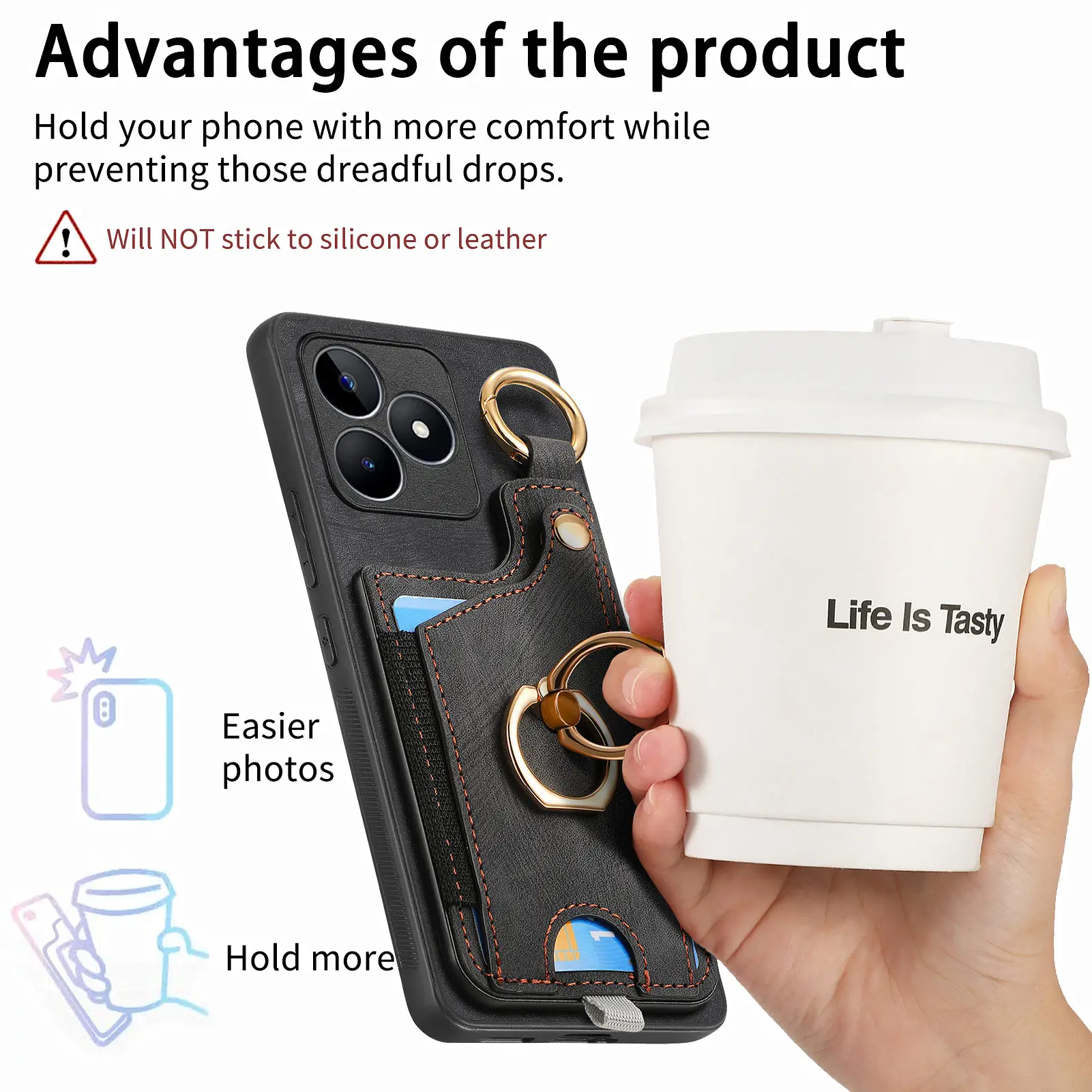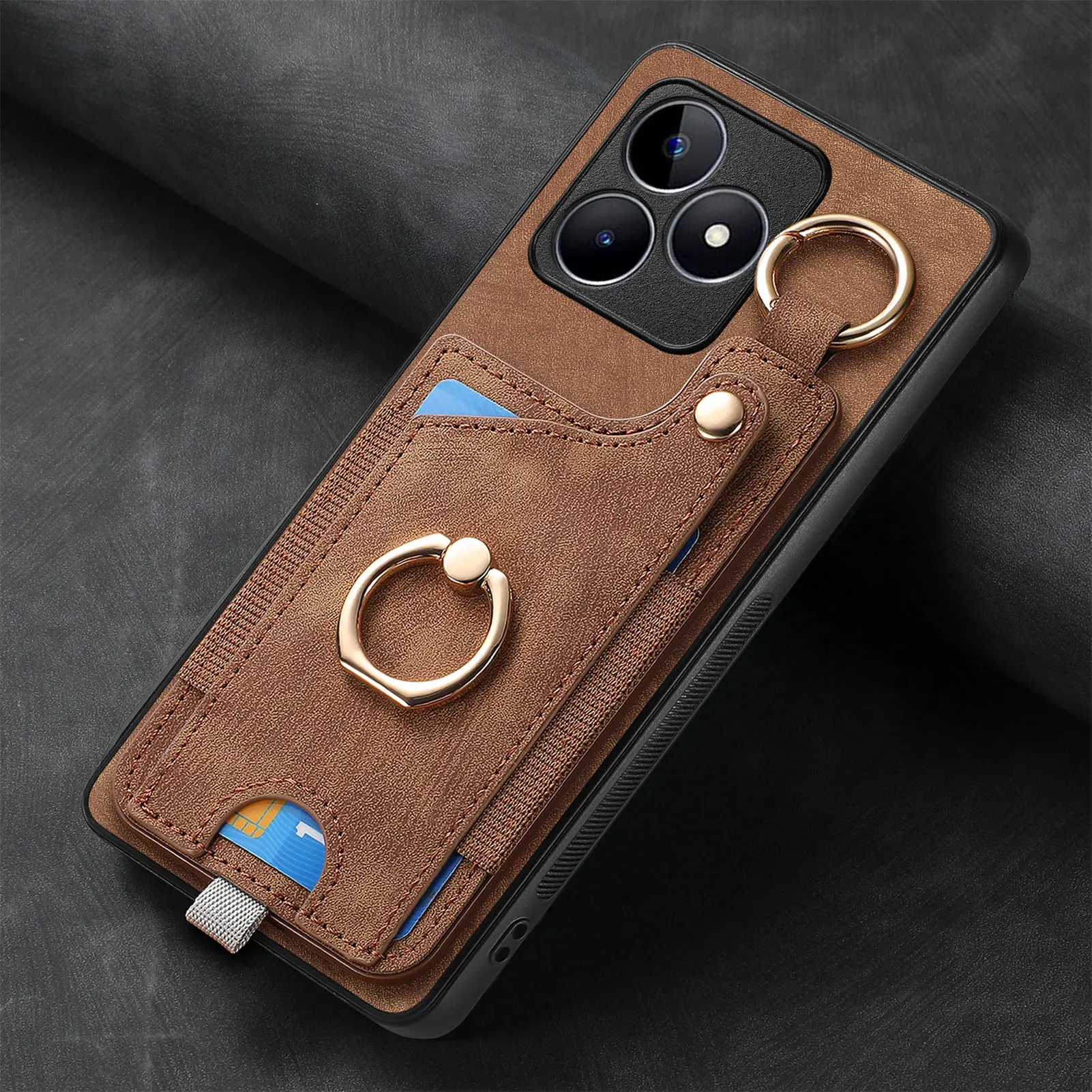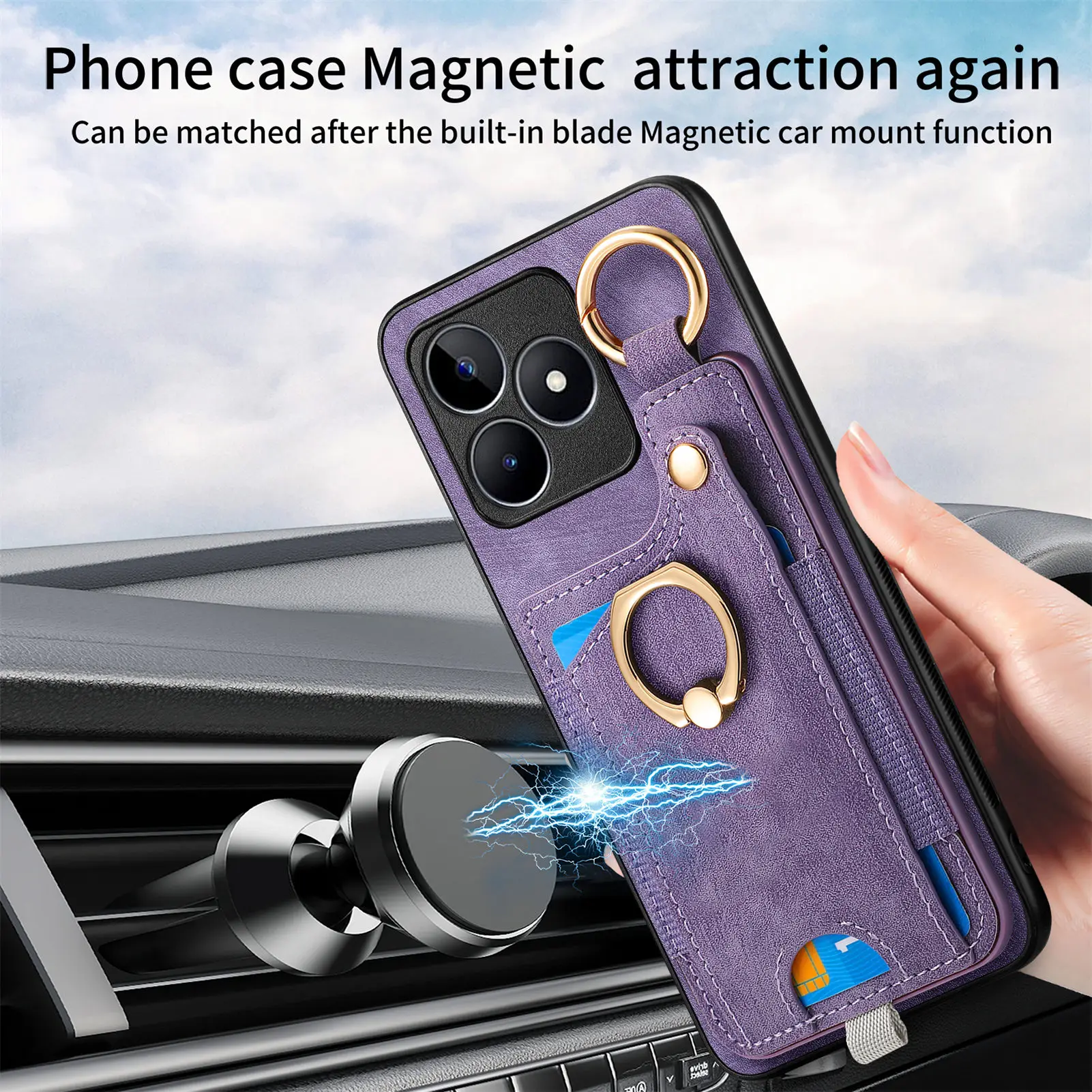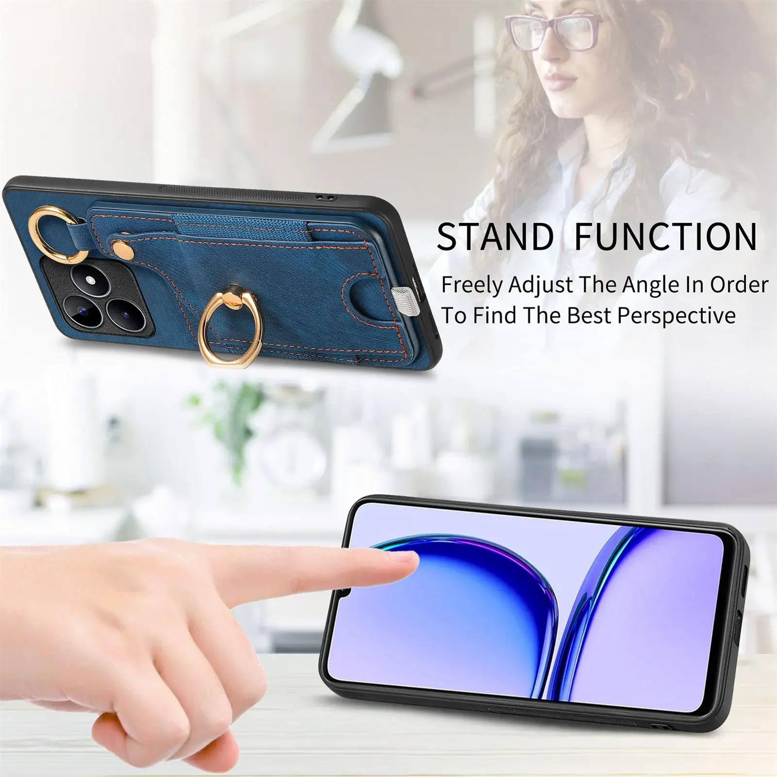 Comprar Soporte de anillo Vertical para tarjetas, Funda de cuero para OPPO Reno 12 Pro 11F A58 A96 A79 A38 A18 Realme C67, funda con soporte magnético