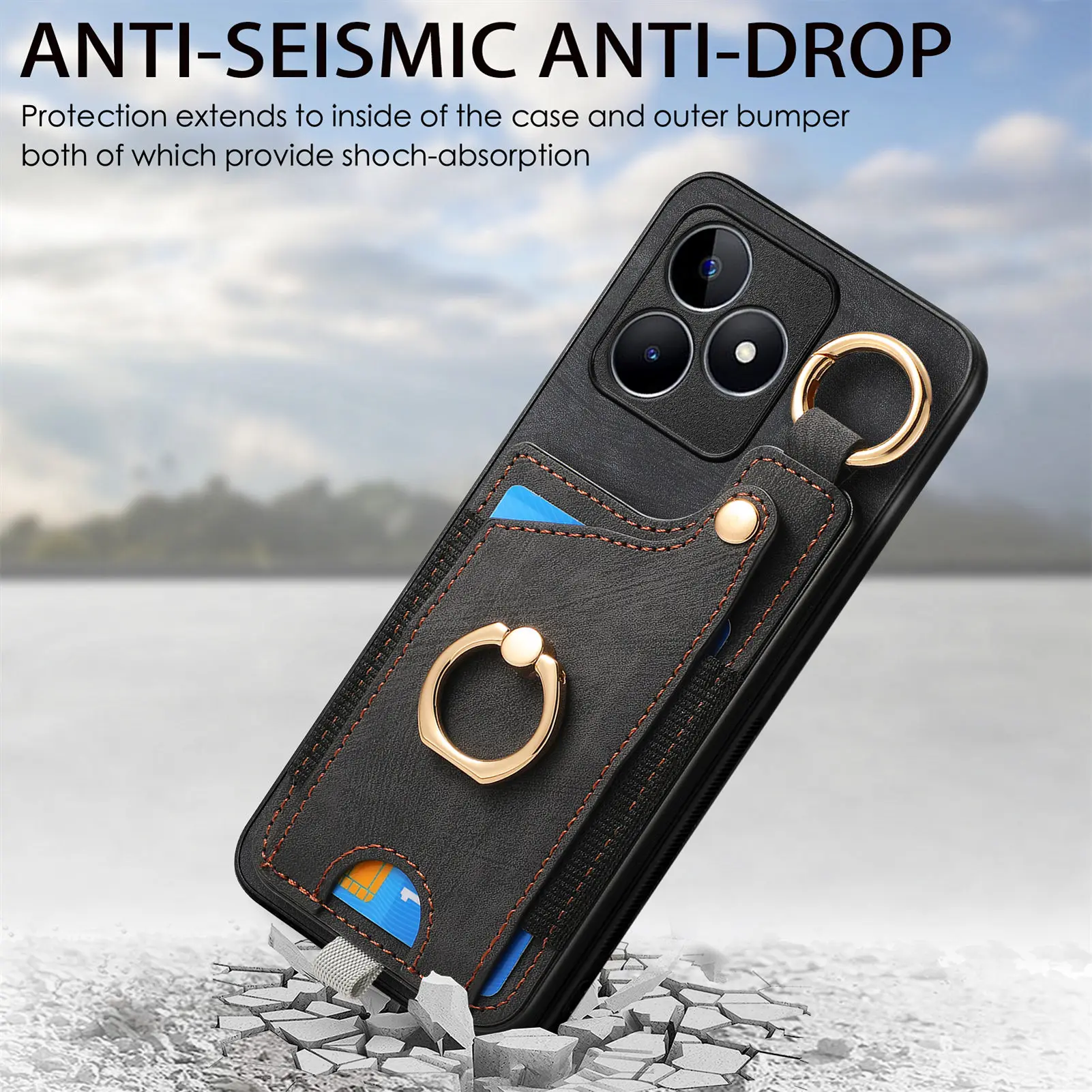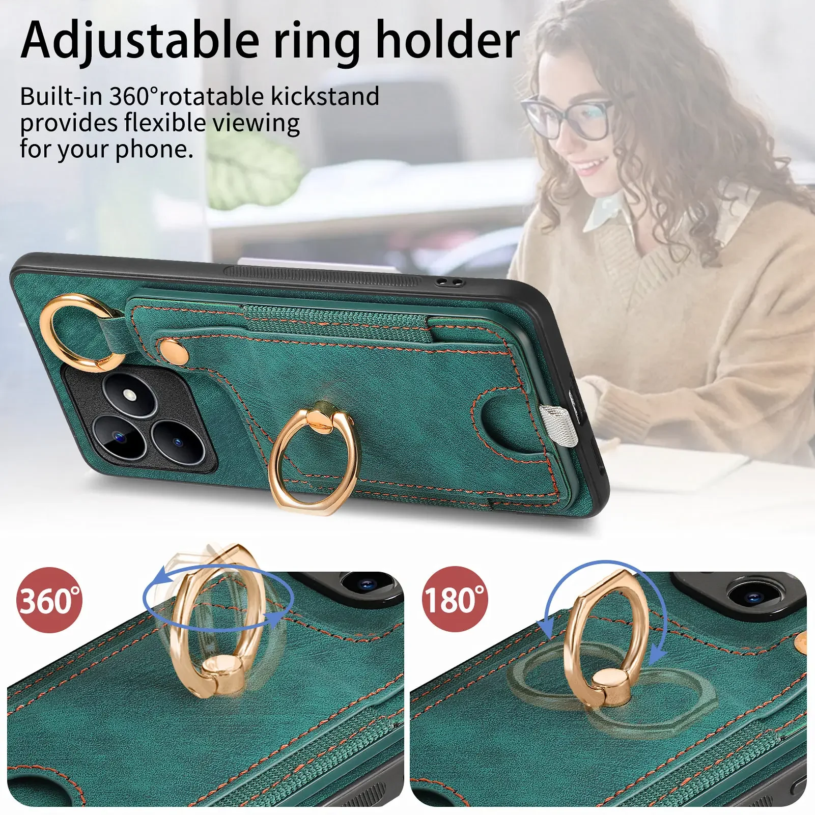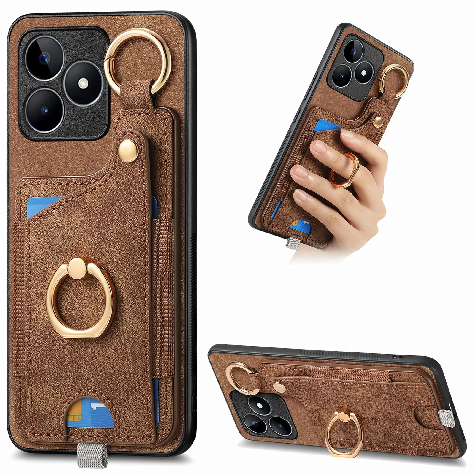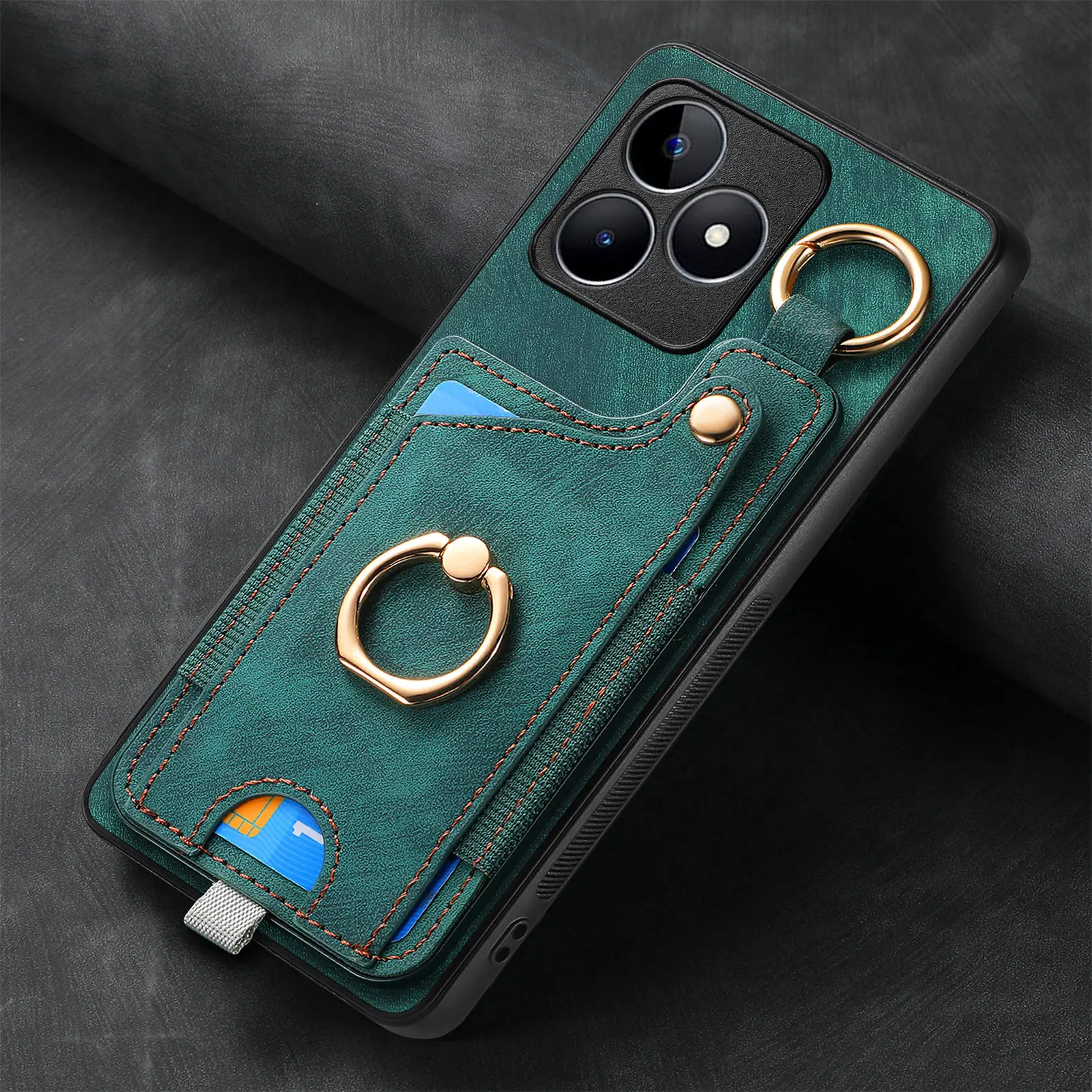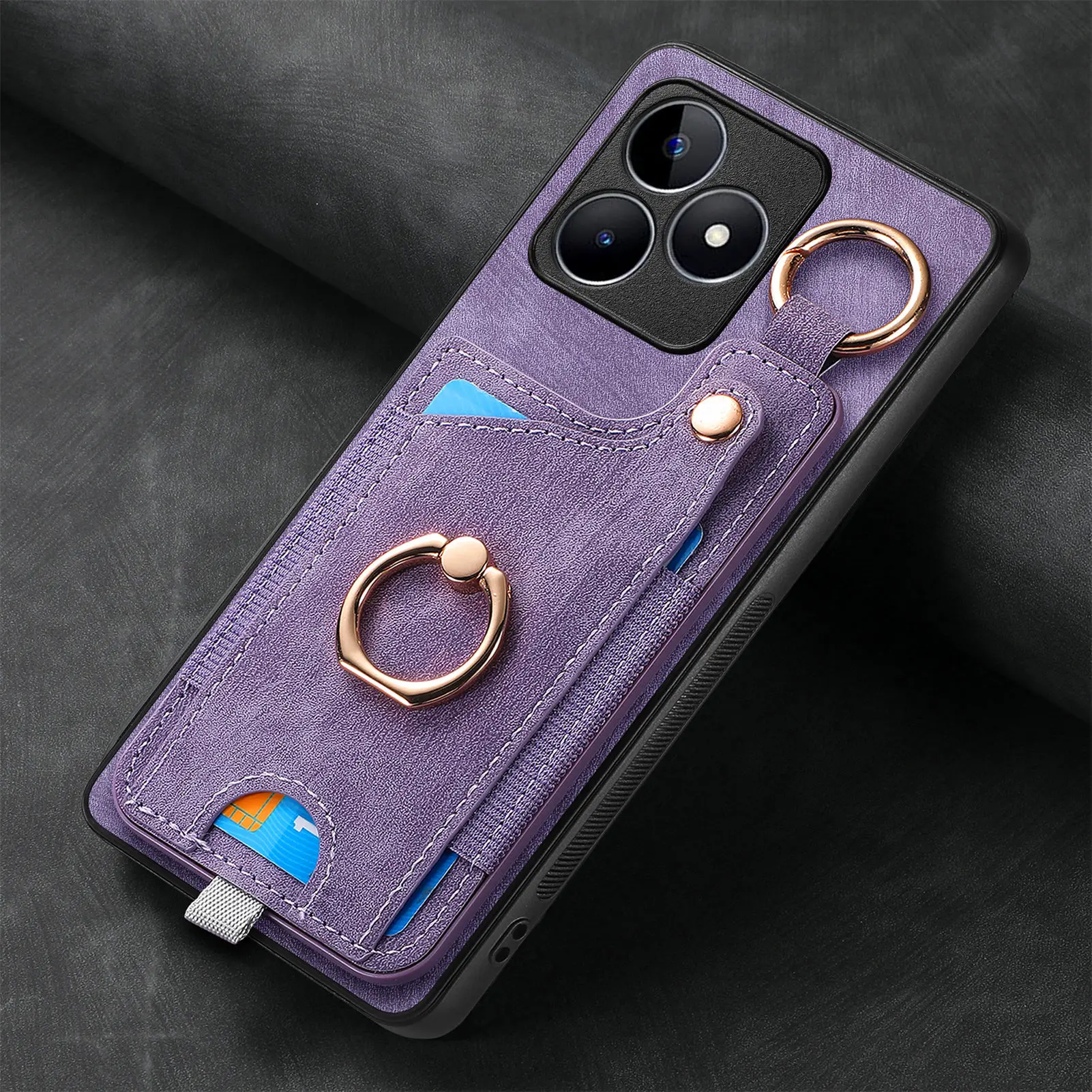 Comprar Soporte de anillo Vertical para tarjetas, Funda de cuero para OPPO Reno 12 Pro 11F A58 A96 A79 A38 A18 Realme C67, funda con soporte magnético