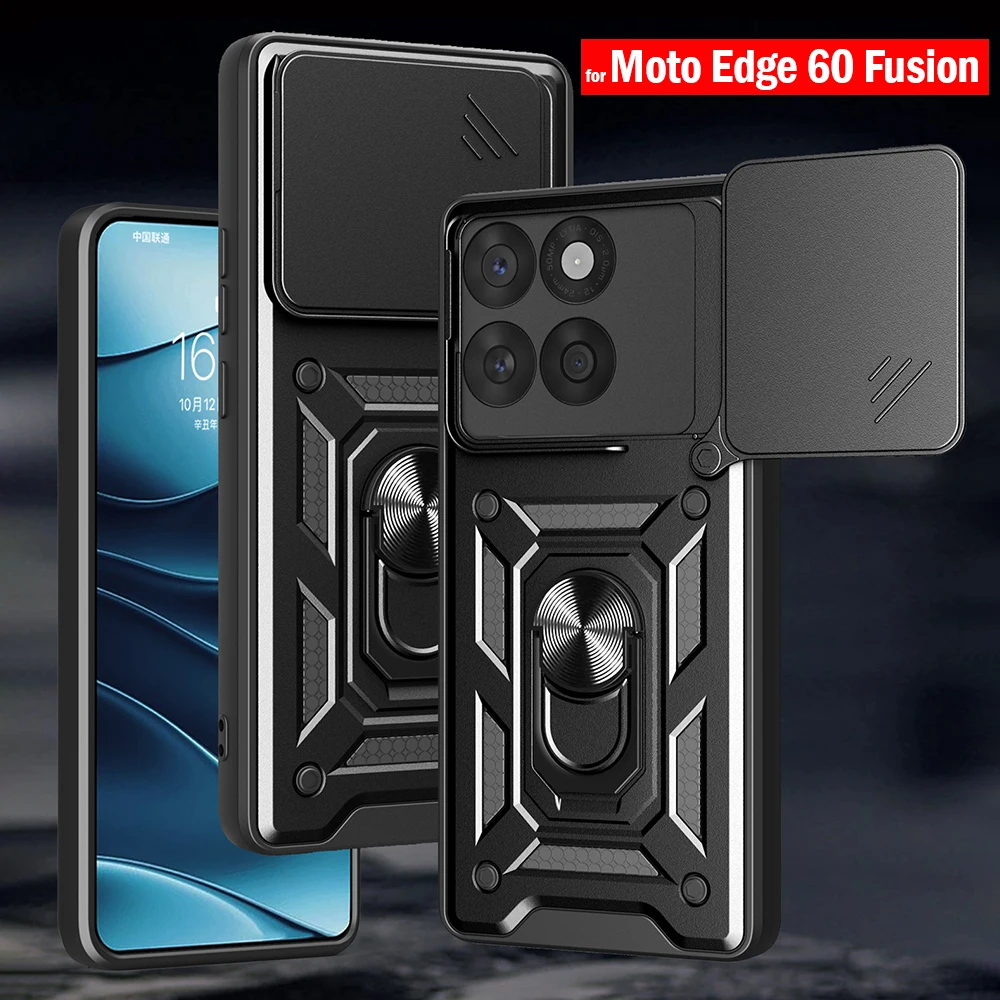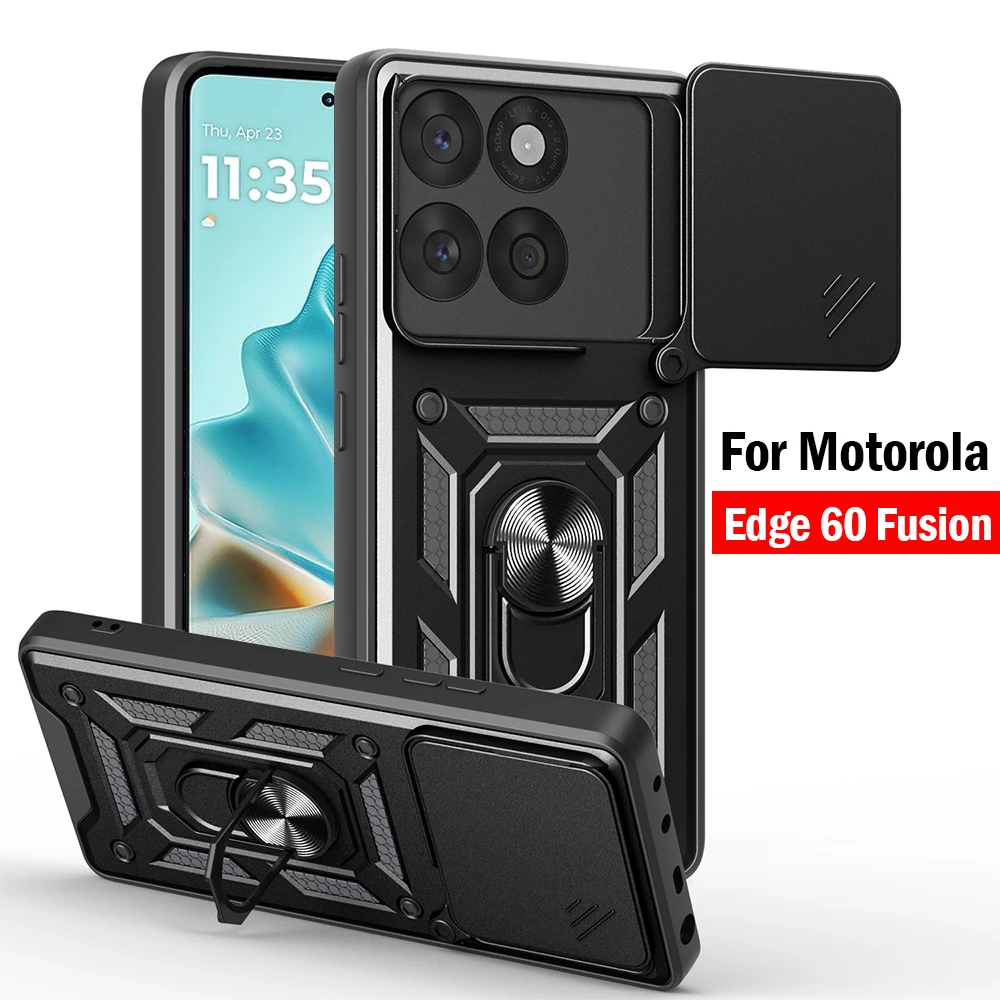 Soporte de armadura Funda para Motorola Edge 60 Fusion 5G, Funda deslizante con anillo para cámara, Funda protectora trasera para Moto Edge 60 Fusion Capa