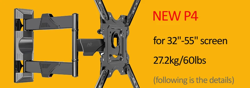 Comprar Soporte articulado retráctil NB DF400 P4 de 32 "-55", 3 brazos oscilantes, movimiento completo, 70kg, para tv, con adaptador, cable oculto de 400x400
