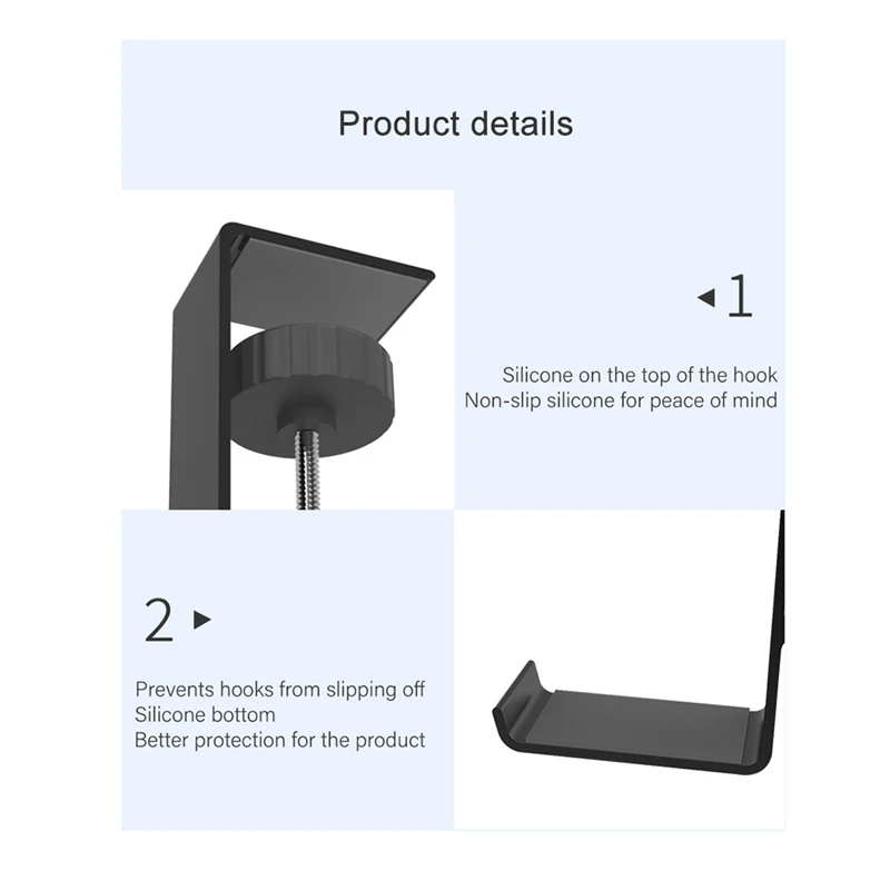 3. Buena protección del dispositivo: el soporte para auriculares cuenta con un diseño de gancho y almohadillas de goma antideslizantes, que protegen sus auriculares de caerse y también evitan la abrasión o arañazos del escritorio.