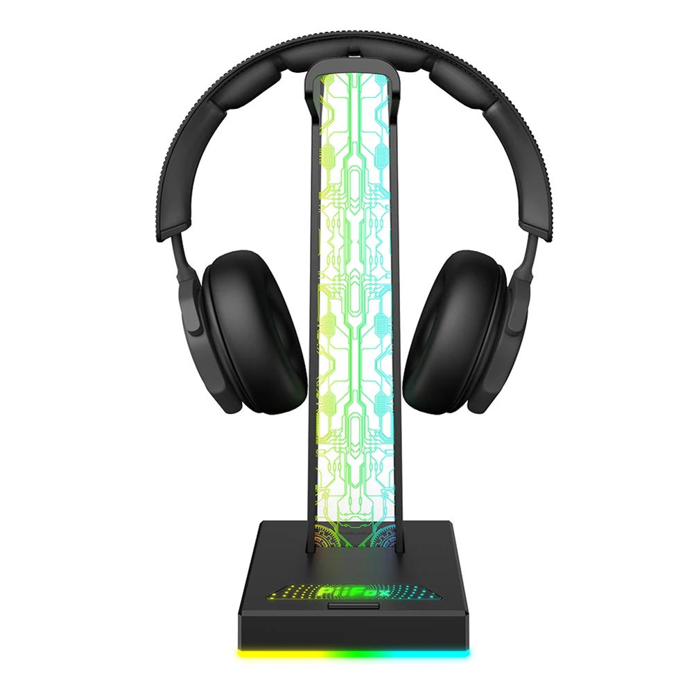 Comprar Soporte de auriculares para juegos RGB, colgador de soporte de pantalla de escritorio con puerto USB Dual de 3,5mm, soporte de Audio para auriculares, accesorios de suspensión