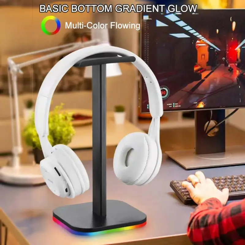 Comprar Soporte de auriculares para juegos, tira de luz de Control táctil con puerto USB Dual, soporte para auriculares para juegos de escritorio, accesorios para auriculares