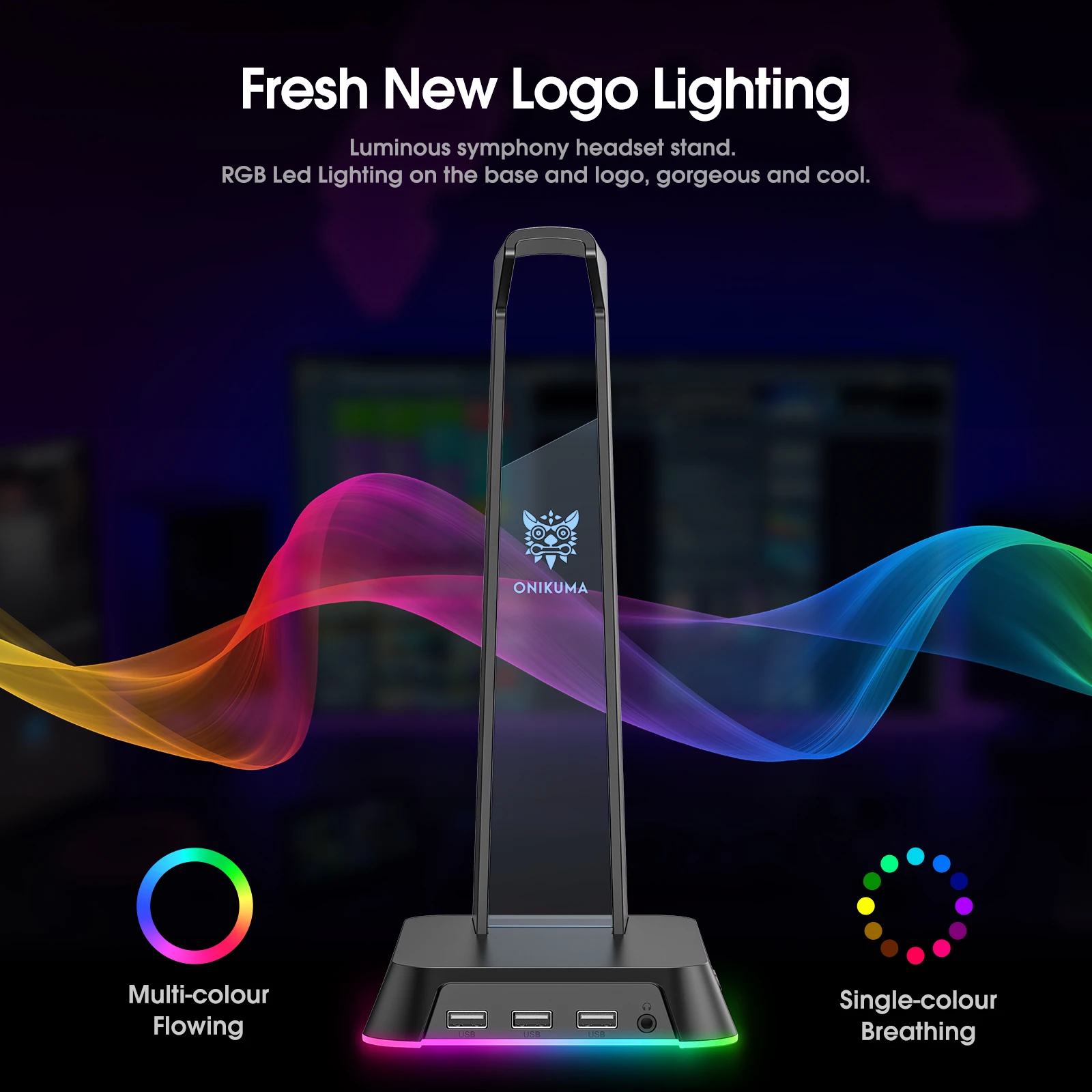 Soporte para auriculares con luz RGB, soporte para auriculares para juegos con 7,1 Surround/3 puertos USB y 3,5mm para accesorios para juegos de jugadores