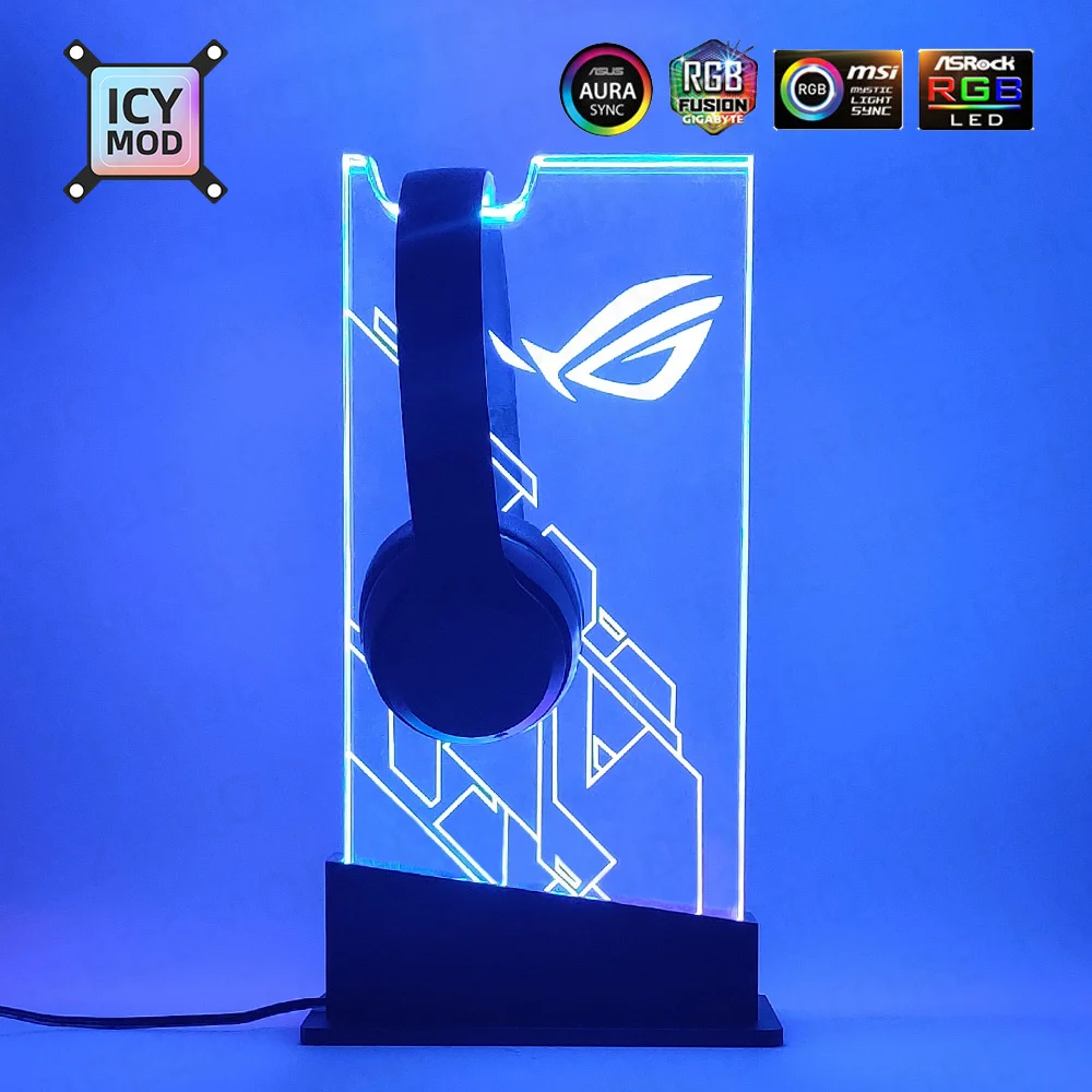 Comprar Soporte de auriculares RGB ARGB transparente AURA SYNC, soporte de auriculares, logotipo personalizable, ROG Gamers, soporte DIY 5V3PIN PC MOD