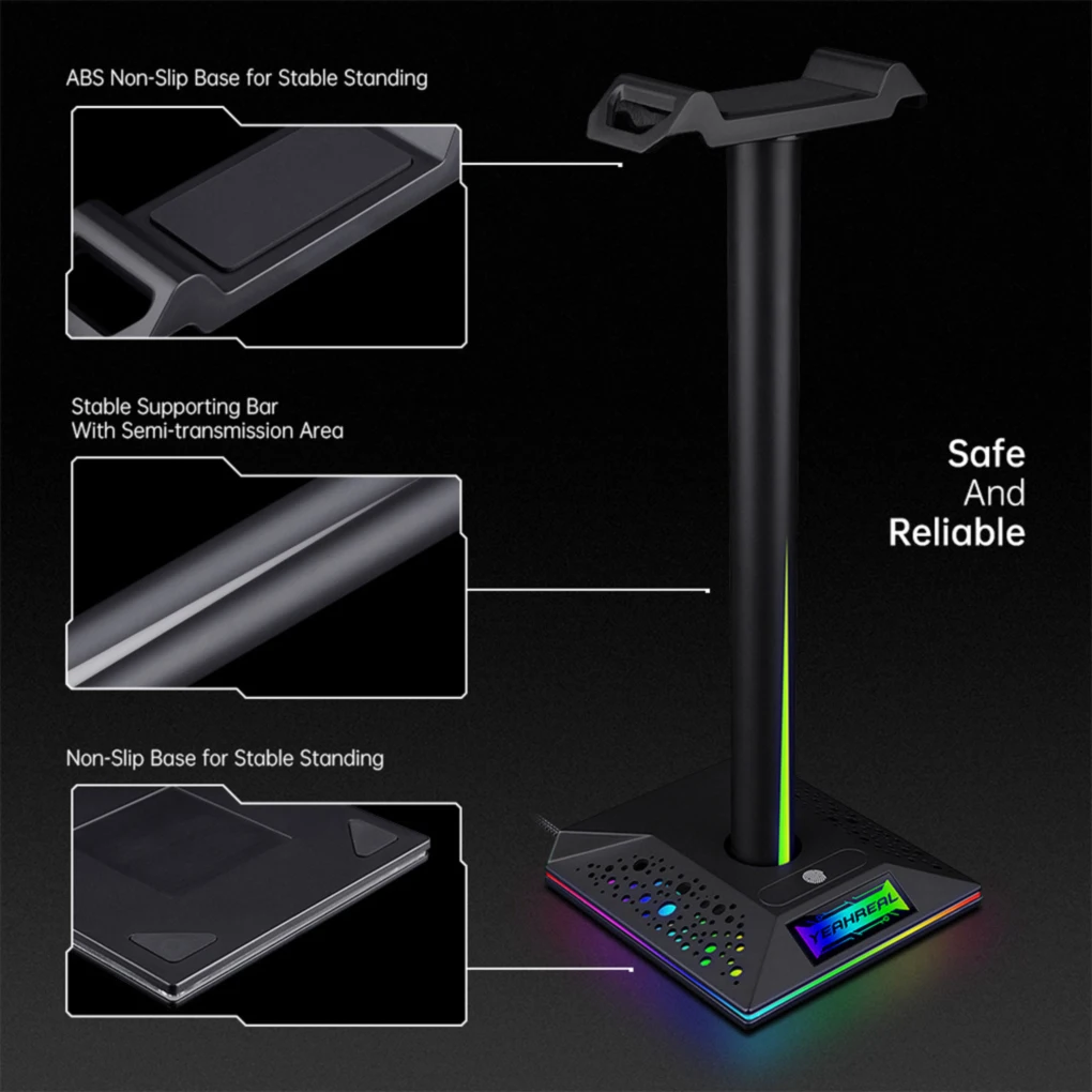Este soporte de auriculares está diseñado con una luz RGB para aumentar el ambiente de juego, mientras tanto hace que el soporte de los auriculares se vea hermoso.