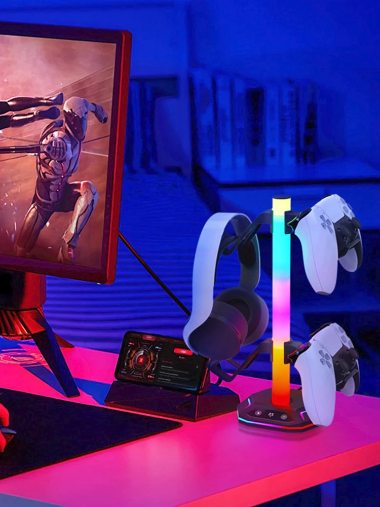 Comprar Soporte para auriculares RGB, soporte para controlador de 9 modos de luz con USB + carga tipo C + puertos de datos USB para PS5/PS4/Xbox/Switch Pro