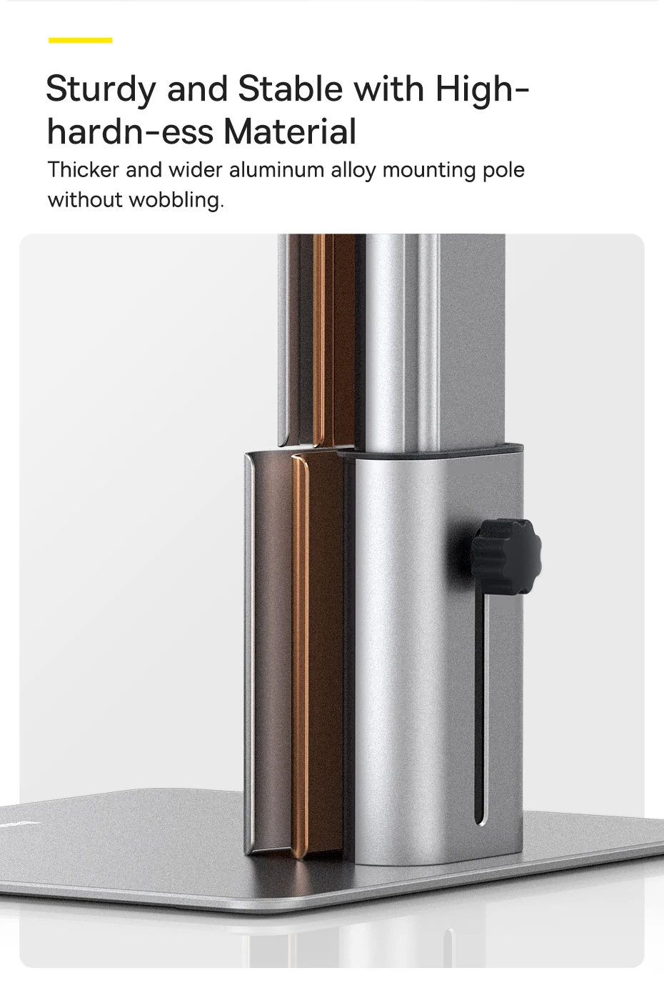 Thicker and wider aluminum alloy mounting pole without wobbling.