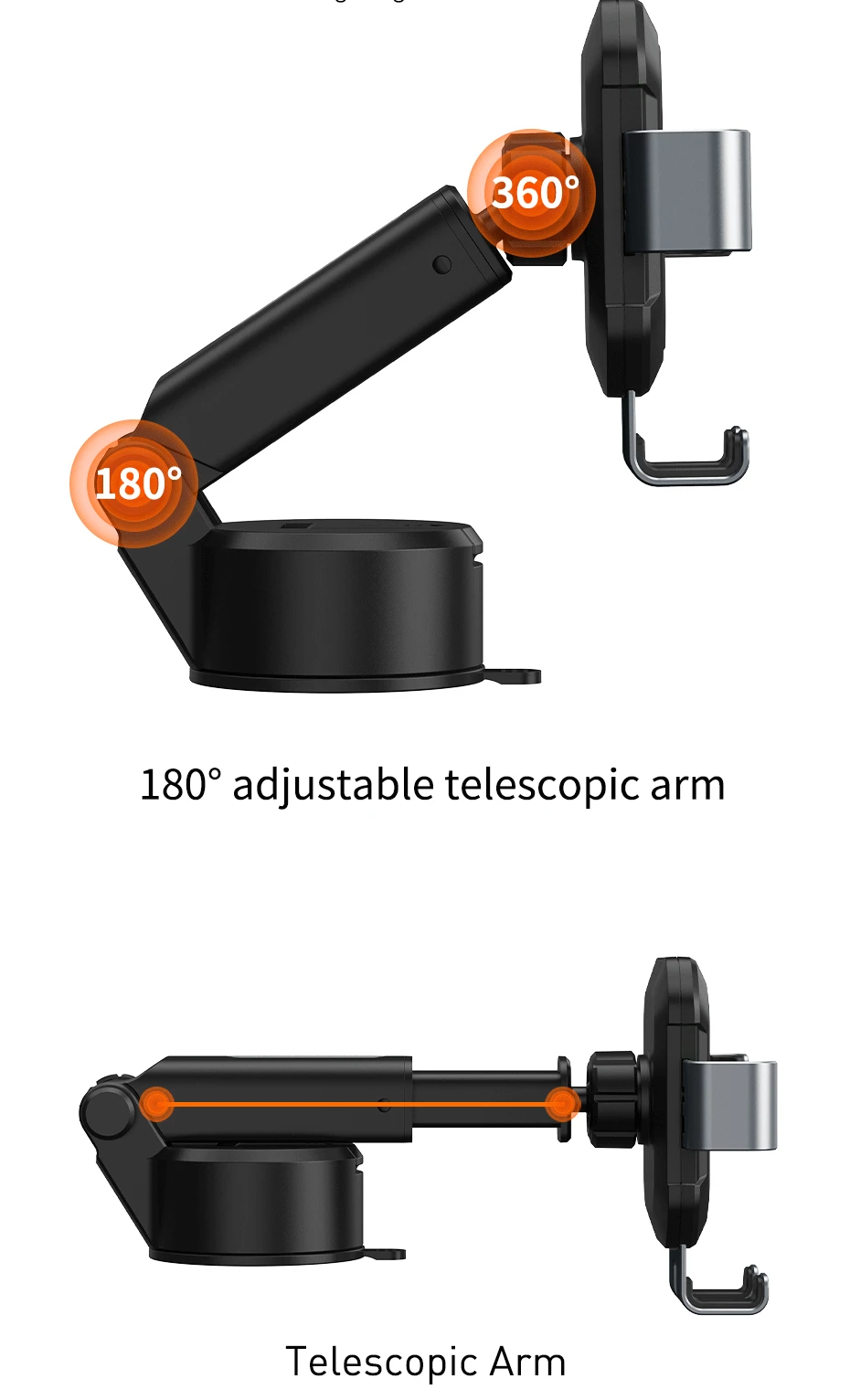 Brazo telescópico ajustable 180 ° y bola Universal 360 °