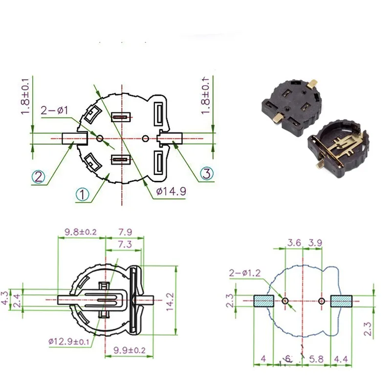 Comprar Soporte de batería de celda de moneda SMD CR1220, soporte de batería 1220 SMD chapado en oro, 10 Uds./lote