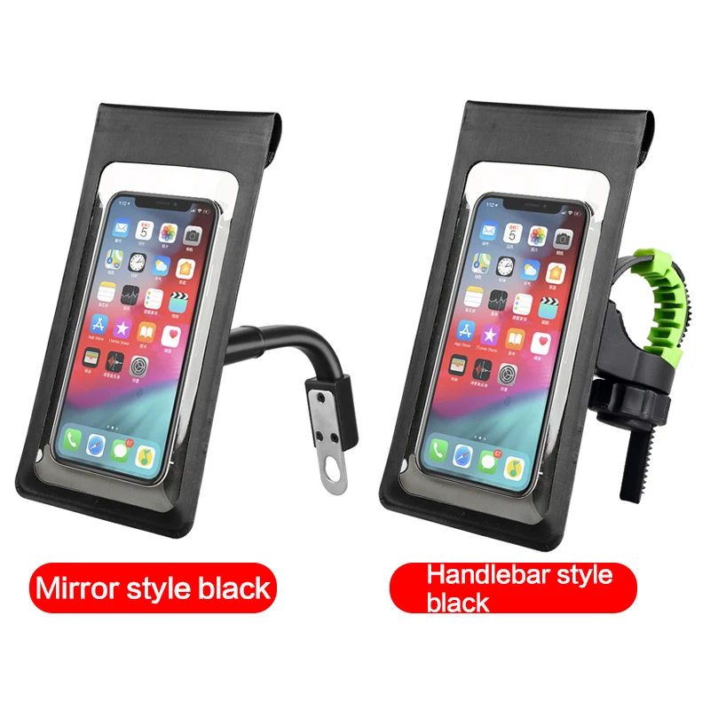Comprar Soporte para bicicleta, bolsa impermeable, funda de teléfono para bicicleta, pantalla táctil de TPU con cubierta para lluvia, espejo para manillar, soporte para motocicleta