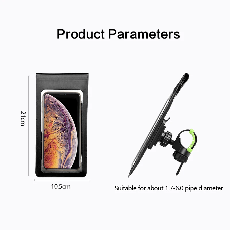 【Impermeable】El soporte para teléfono para bicicleta está hecho de poliéster impermeable y un diseño de pantalla táctil transparente de TPU que puede proteger perfectamente su teléfono en días lluviosos y entornos extremos.