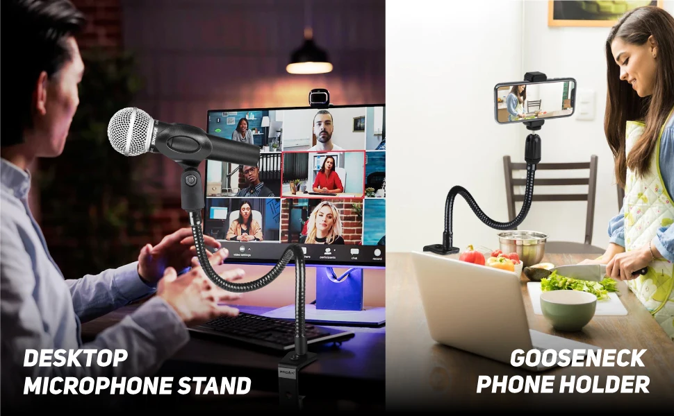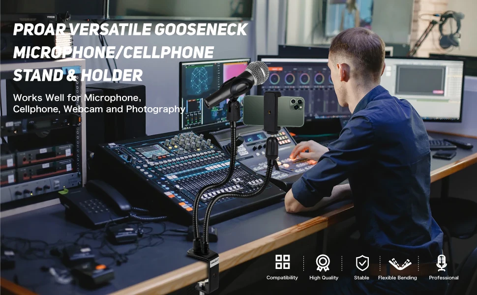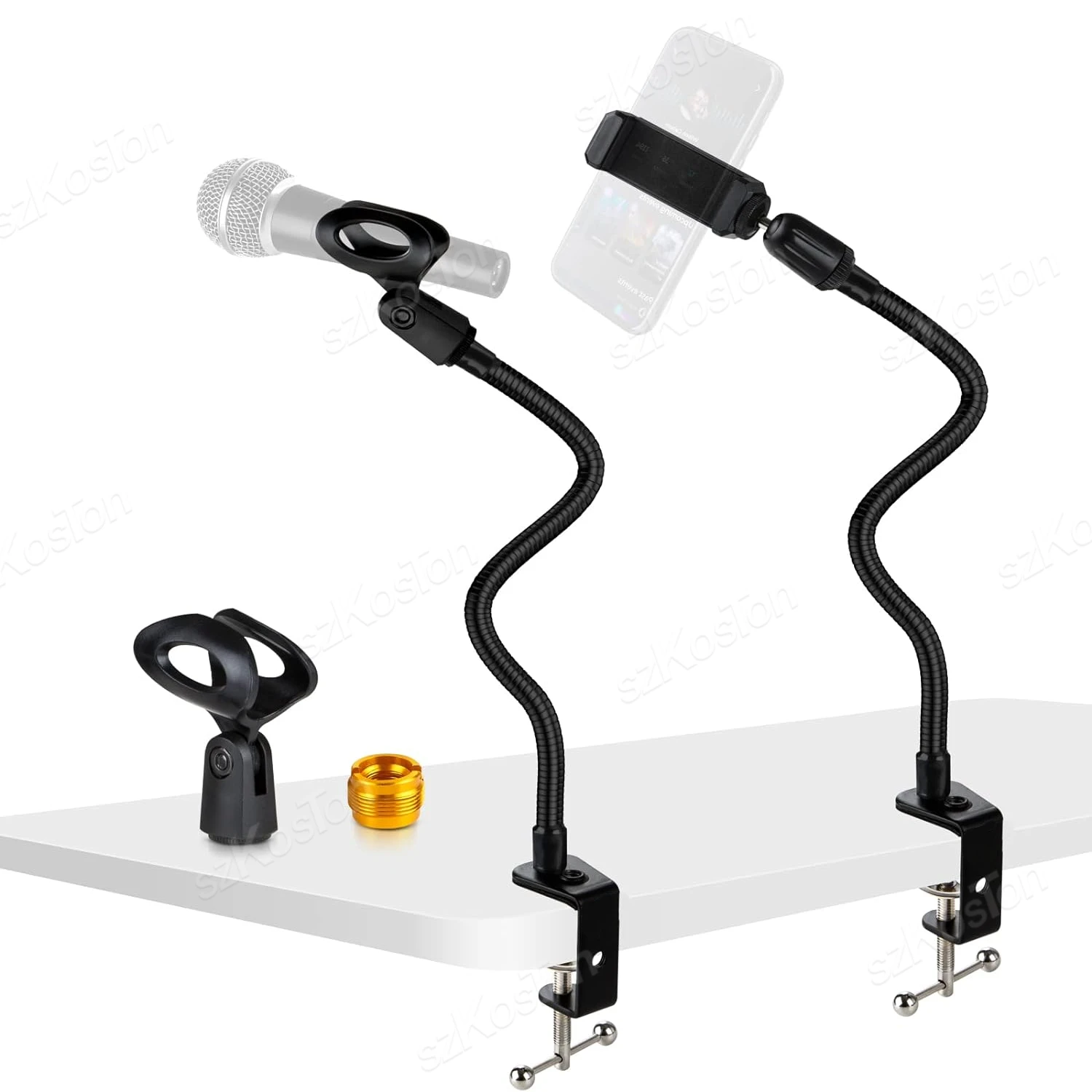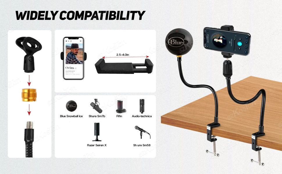 🎤【SOPORTE UNIVERSAL DE MICRÓFONO/SOPORTE DE TELÉFONO】-Soportes de escritorio multifunción con cuello de cisne. El soporte del micrófono de escritorio también se puede utilizar como soporte para teléfono móvil cambiando el clip. Nuestro soporte para teléfono de cuello de cisne es compatible con dispositivos smartphone de 2,5 ~ 4,0 pulgadas. Además, este soporte para micrófono funciona muy bien con los micrófonos más populares. El soporte de micrófono szkoston es una configuración versátil tanto para principiantes como para uso profesional.