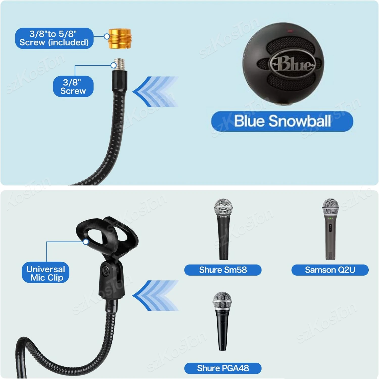 Comprar Soporte de brazo de micrófono de escritorio, cuello de cisne Flexible, soporte de teléfono para bola de nieve azul, hielo SM58, PGA48, Samson A6V, K669