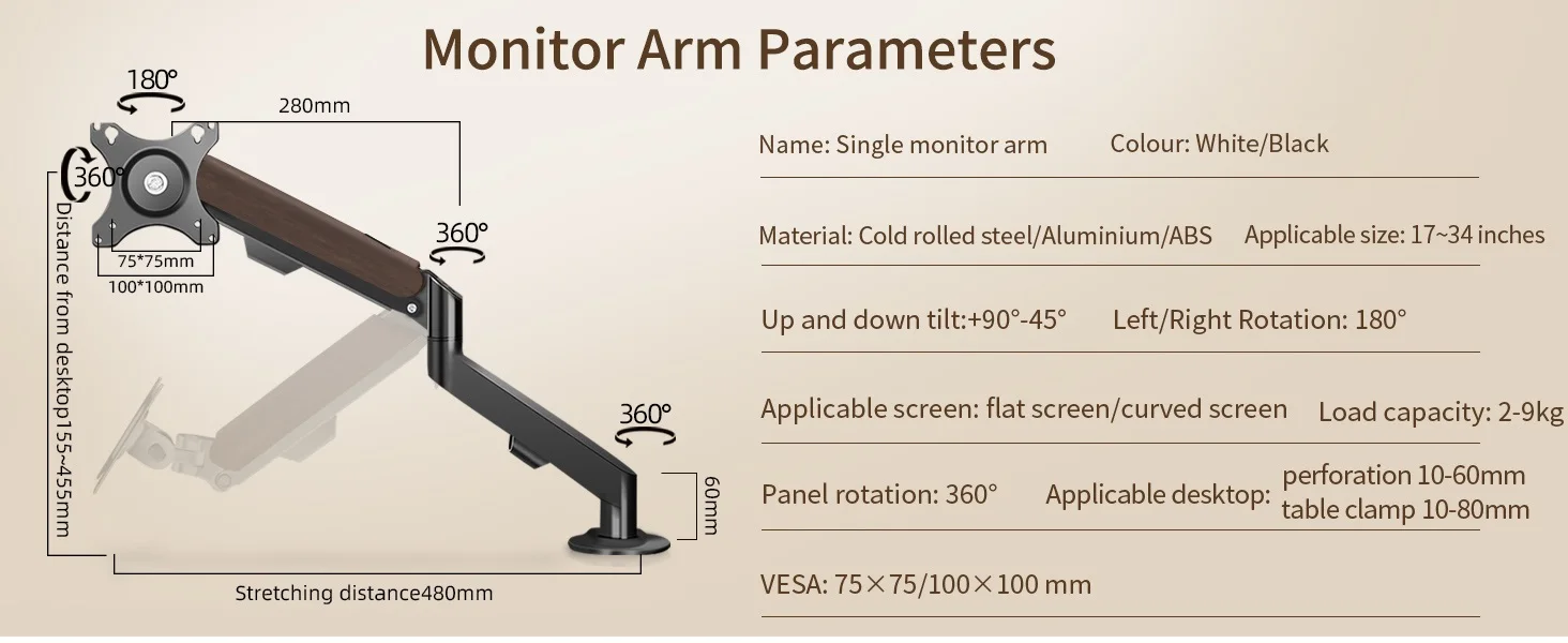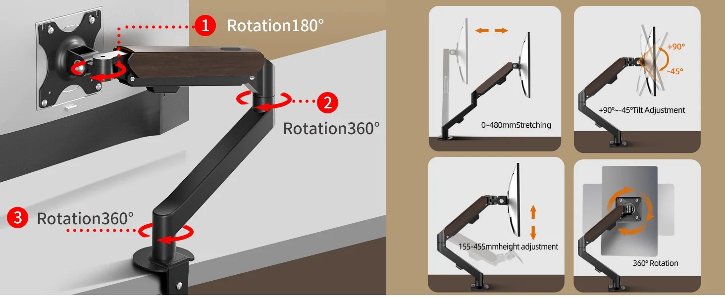 Muelle de Gas de escritorio M5, 17-30", soporte para Monitor LED LCD, carga de brazo articulado, soporte de puntal de movimiento completo de 2-9kg, soporte para Monitor, soporte para PC【Introducción del producto】puerto