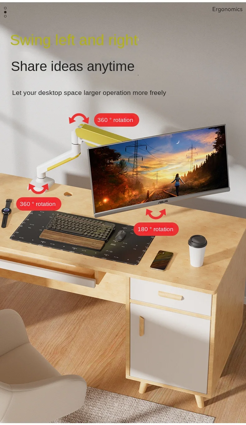 Muelle de Gas de escritorio M5, 17-30", soporte para Monitor LED LCD, carga de brazo articulado, soporte de puntal de movimiento completo de 2-9kg, soporte para Monitor, soporte para PC【Introducción del producto】puerto