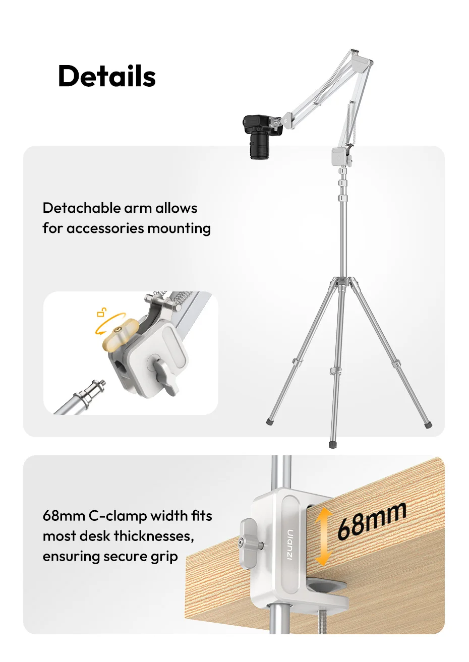 Ulanzi TH04 Camera Overhead Boom Arm Stand with Uka Quick Release System DSLR Camera Mount Desk Light Stand For Photography Vlog