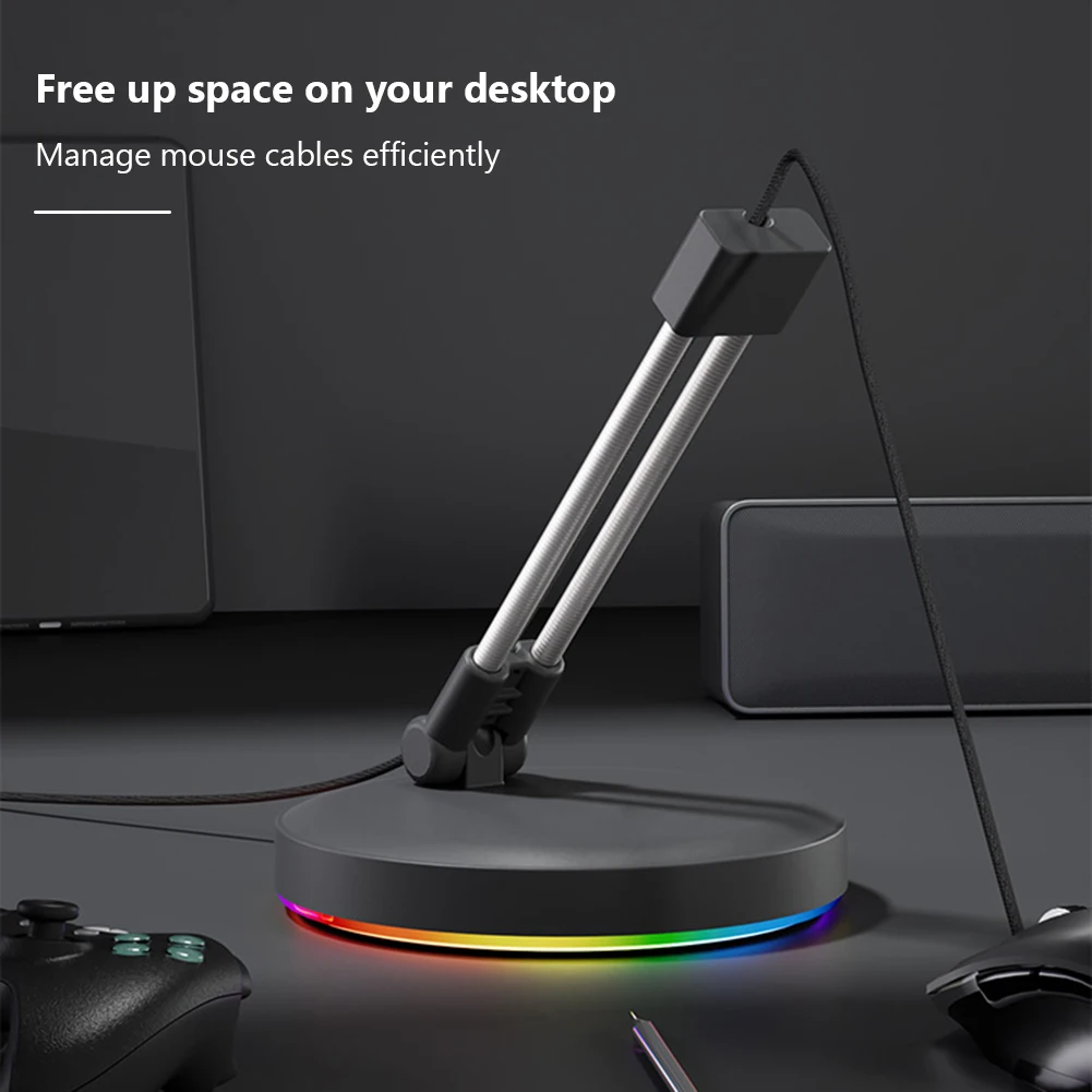 Característica:1.Modos de luz LED RGB:El clip para cable de ratón elástico para ratón cuenta con bombillas LED integradas que ahorran energía para el cuidado de los ojos con fascinantes efectos de iluminación RGB de arco iris.Dígale adiós a la iluminación sencilla y disfrute del ciclo de colores vibrantes para mejorar su configuración de juego y combinar con su estética de juego.