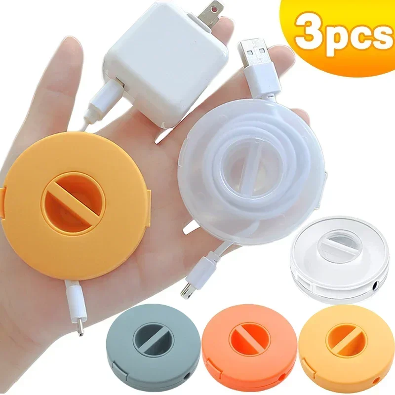 Comprar Soporte de Cable de cargador portátil, enrollador de Cable de almacenamiento redondo, gestión de cables retráctil, carrete de Cable USB Flexible, 3-1 Uds.