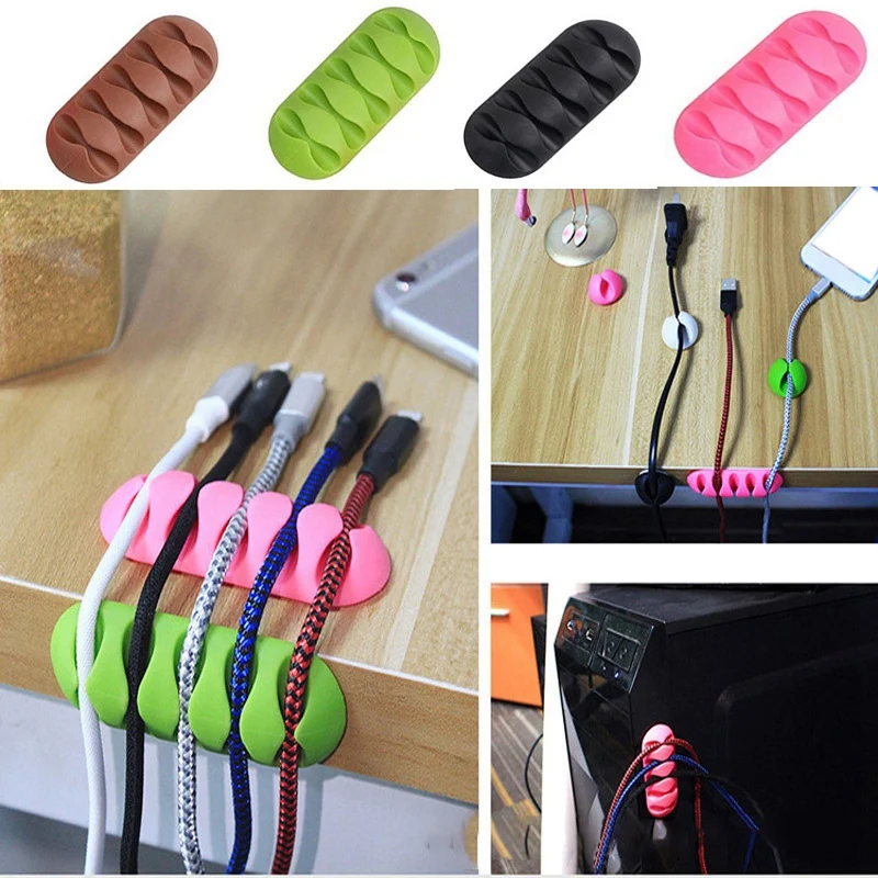Comprar Soporte de Cable de silicona con 5 Clips, organizador de cables, gestión de bobinadora USB, para ratón, auriculares, Etc.