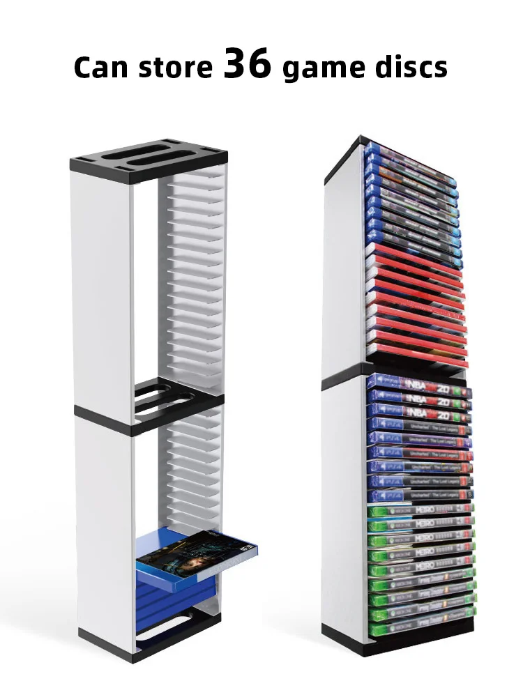 Este estante de almacenamiento para cajas de tarjetas de juego puede contener hasta 24 discos y 36 discos.