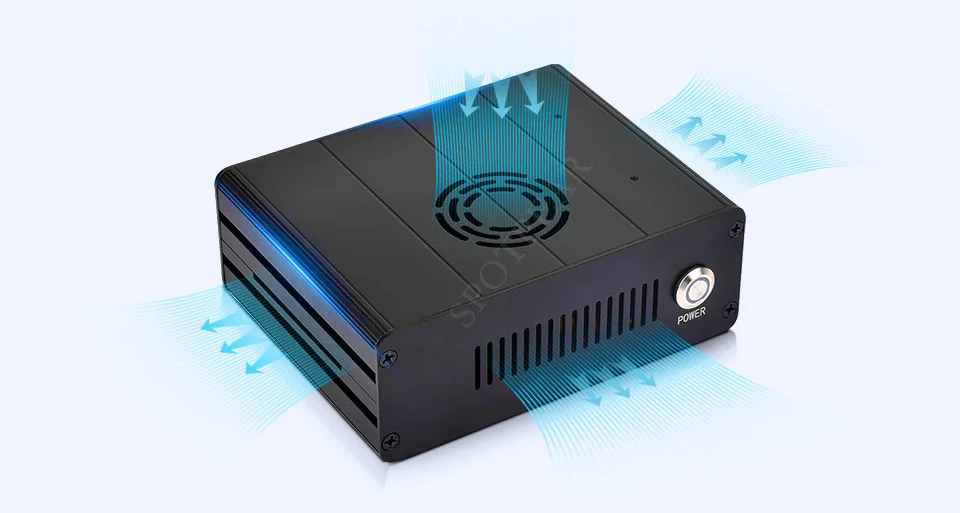 [] Ventilaciones reservadas de flujo de aire en tres lados, orificios dedicados en la parte superior para el ventilador incorporado, brindan un excelente efecto de enfriamiento