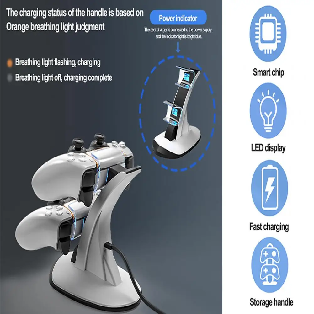 Joystick Soporte de carga Controlador de juego eficiente Ps5 Base de carga con protección contra sobretensión Luces indicadoras fáciles de usar