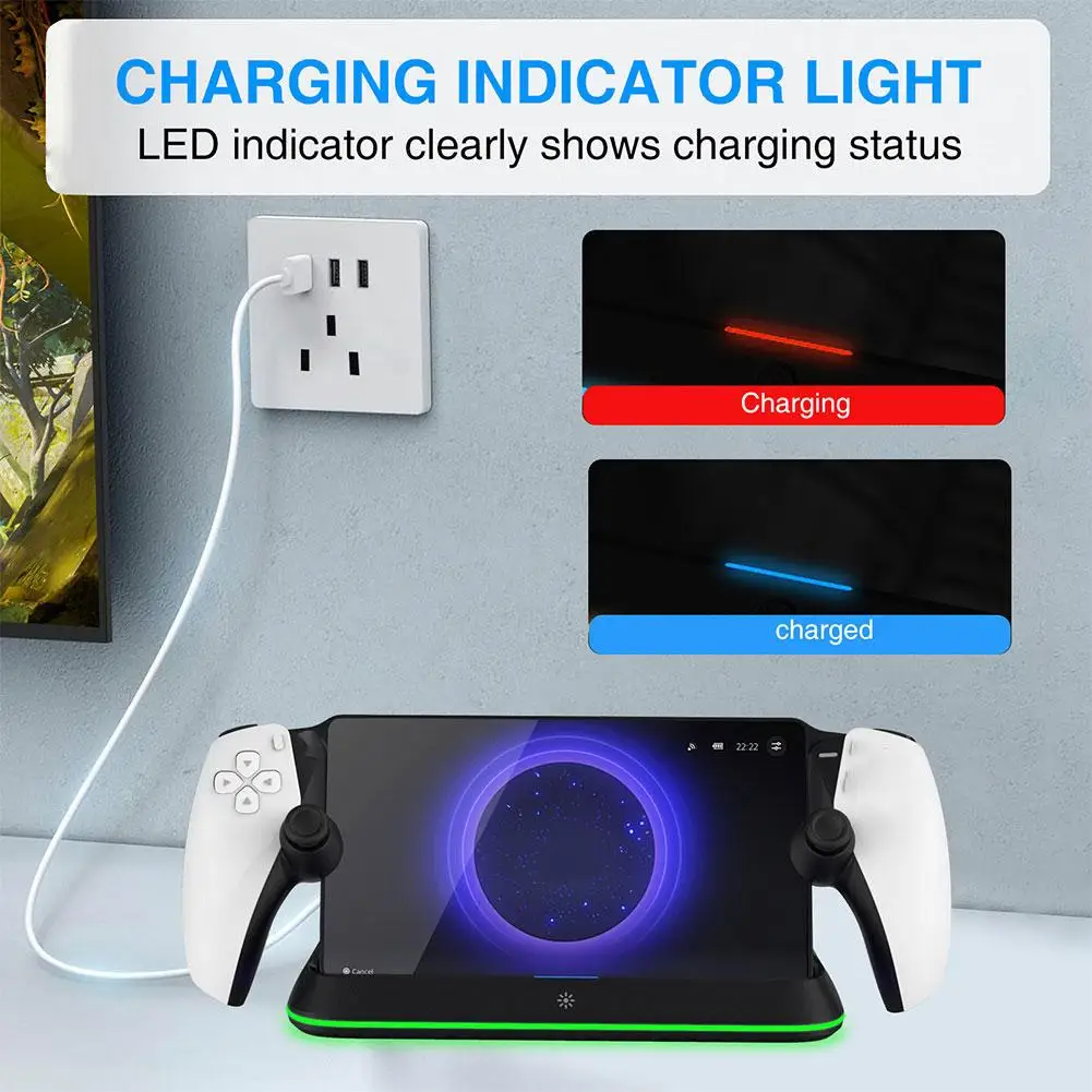 Comprar Soporte de carga para Portal, base de carga de estabilidad mejorada con luz Rgb de encendido/apagado, Cable tipo c, diseño de ángulo cómodo V9s7