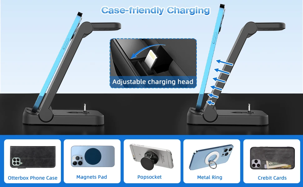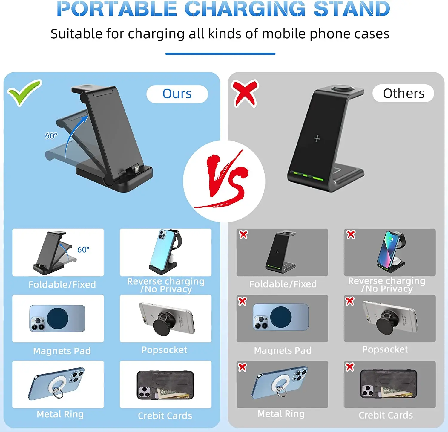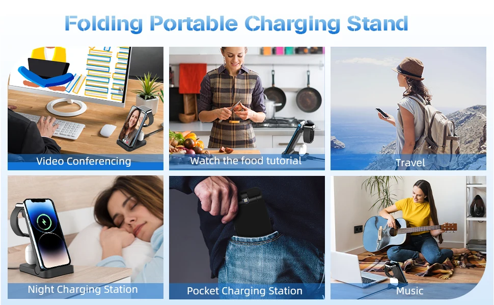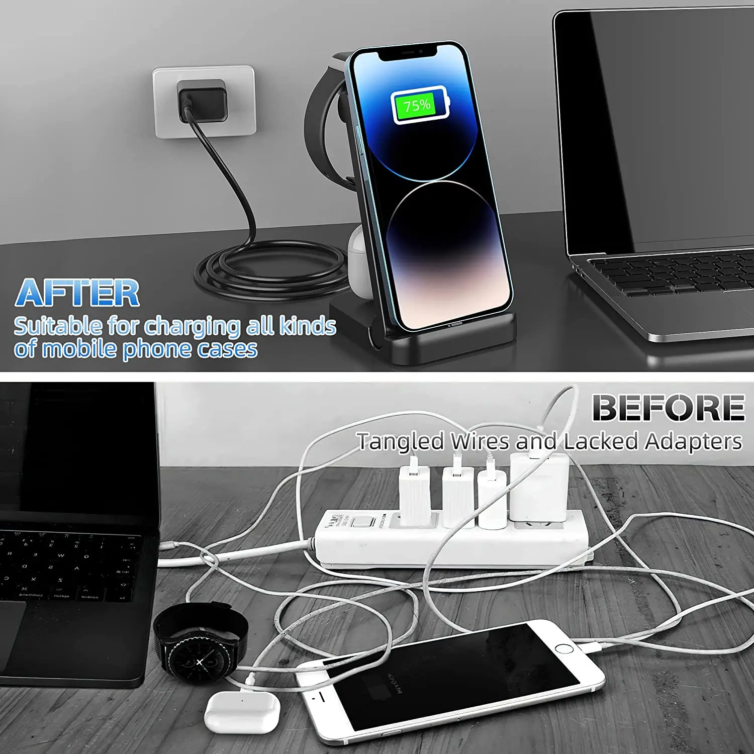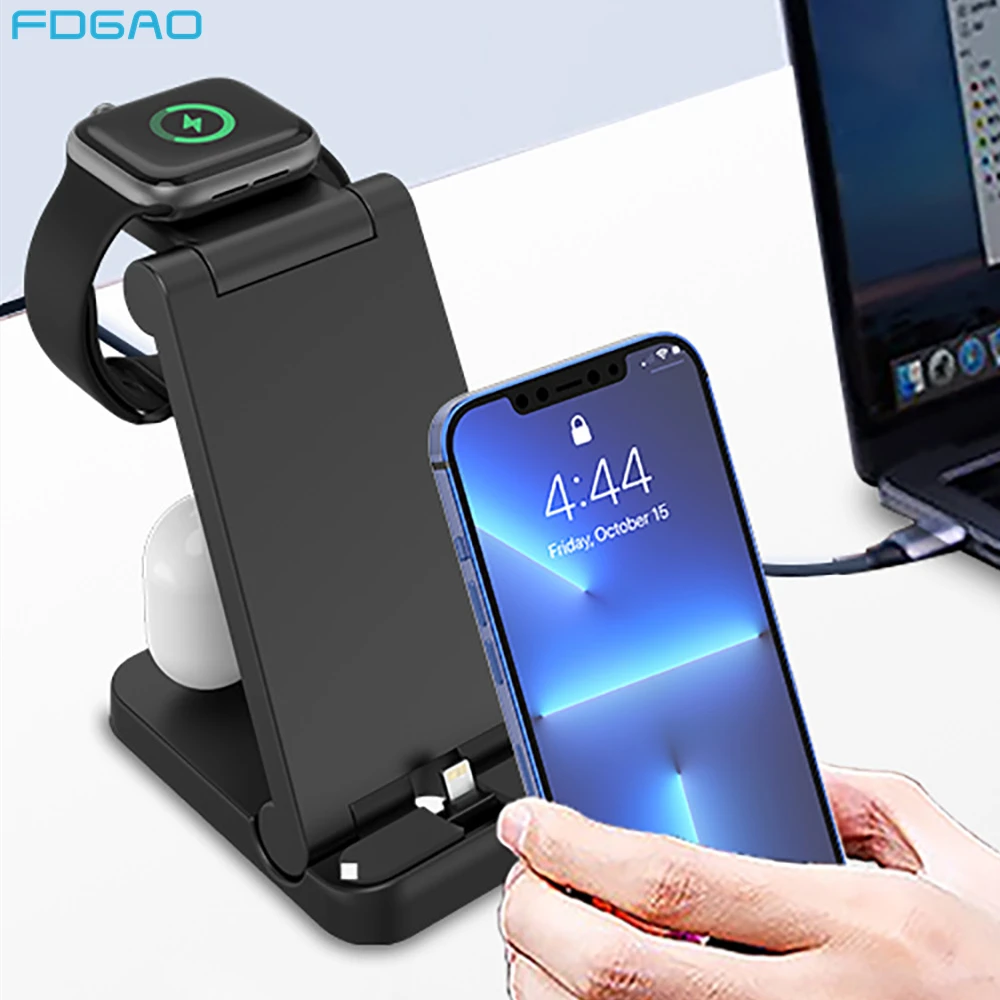 Comprar Soporte de carga rápida 3 en 1 para Apple iPhone 14 13 12 11 IWatch 8 Airpods Pro, estación de carga inalámbrica plegable