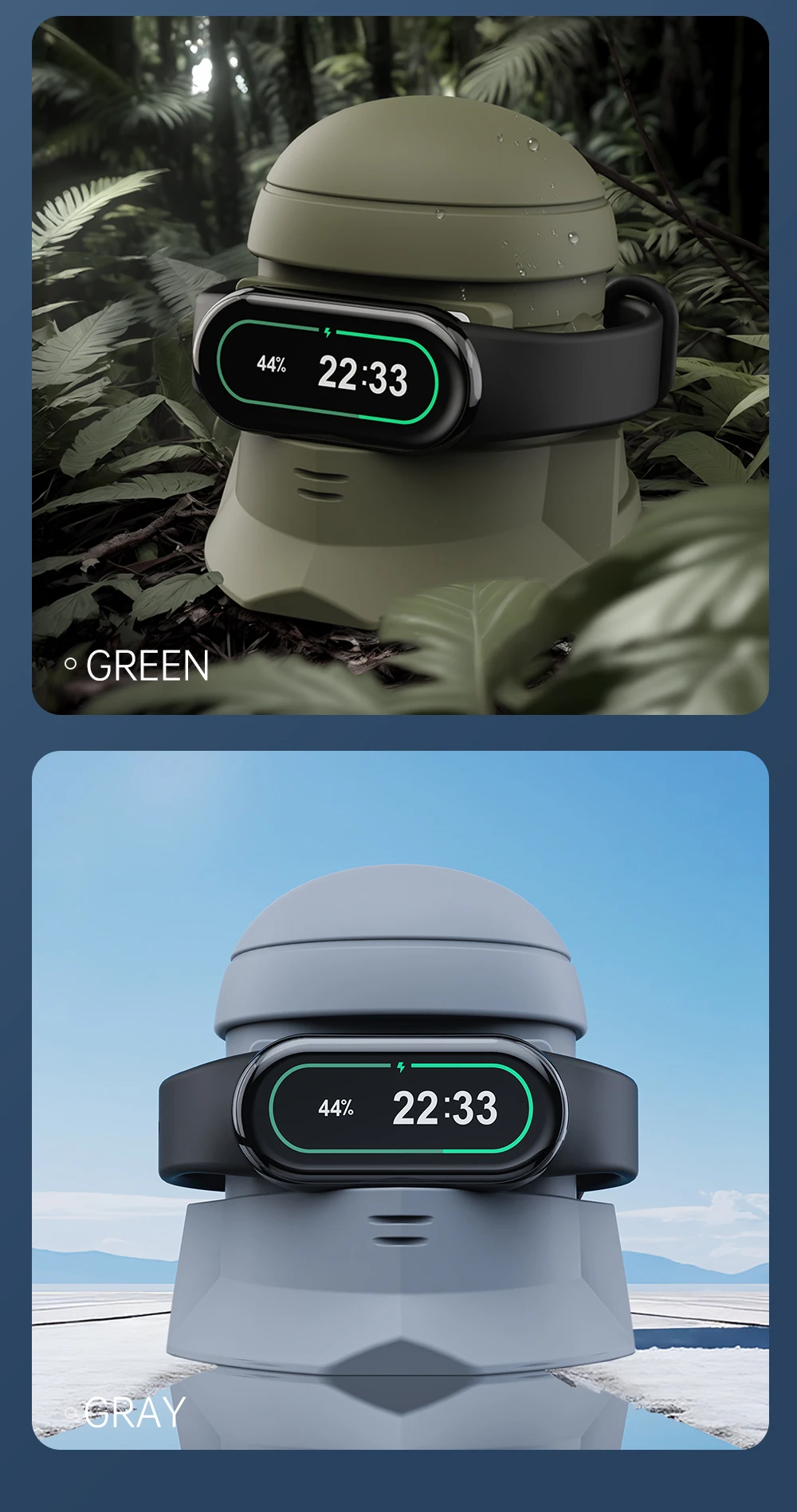 Un soporte de carga de silicona diseñado para Xiaomi Mi Band 10/9/8.Mantiene la banda estable mientras se carga y funciona como una pequeña decoración de escritorio.