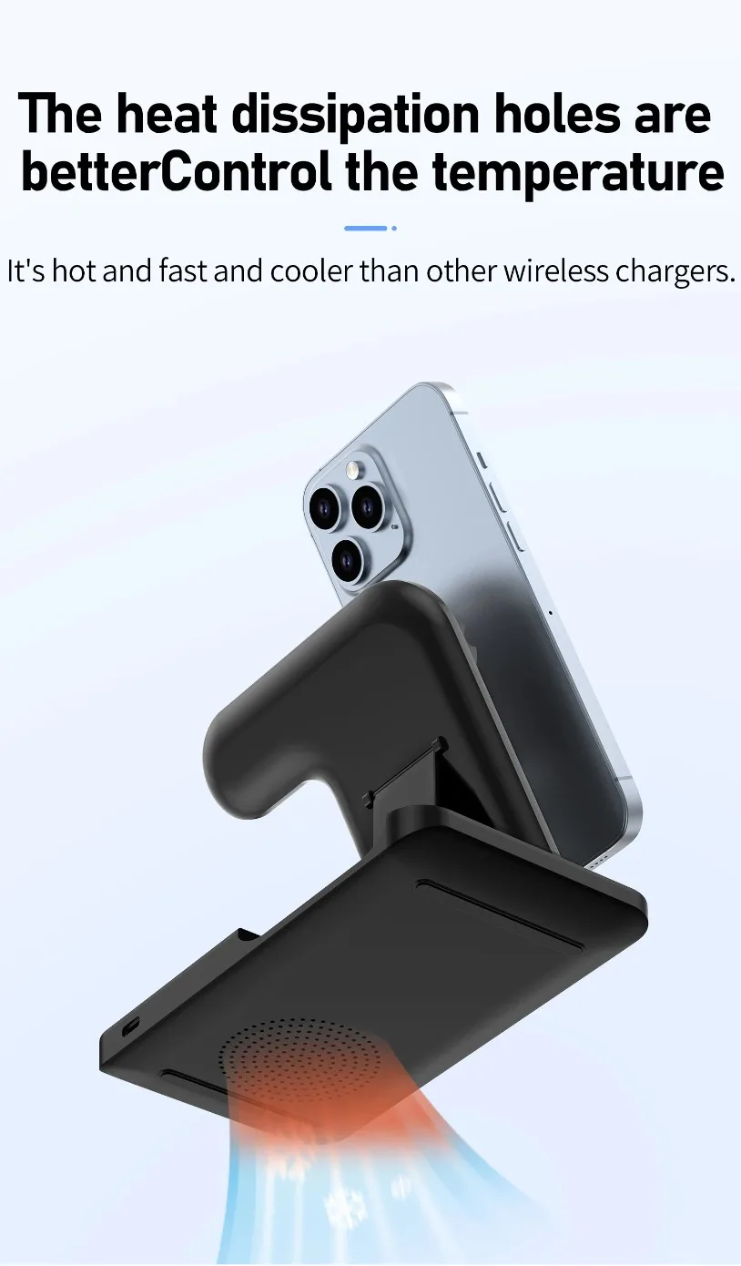 【Plegable y fácil de transportar】Nuestra base de carga inalámbrica está diseñada para ser liviana, plegable y ahorrar espacio, por lo que puede colocarla fácilmente en un bolsillo o bolso.En el futuro, ya no tendrá que preocuparse por dañar su dispositivo usando un cable de carga desconocido en un hotel, restaurante, cafetería o viajando.