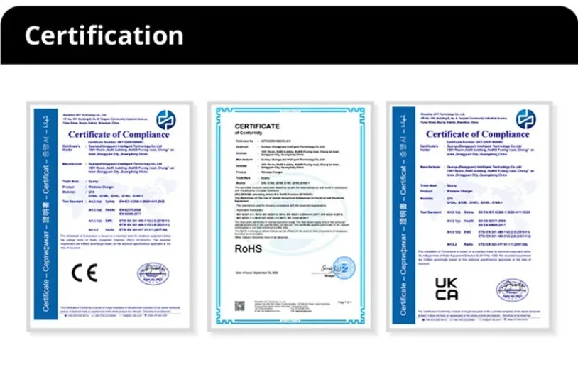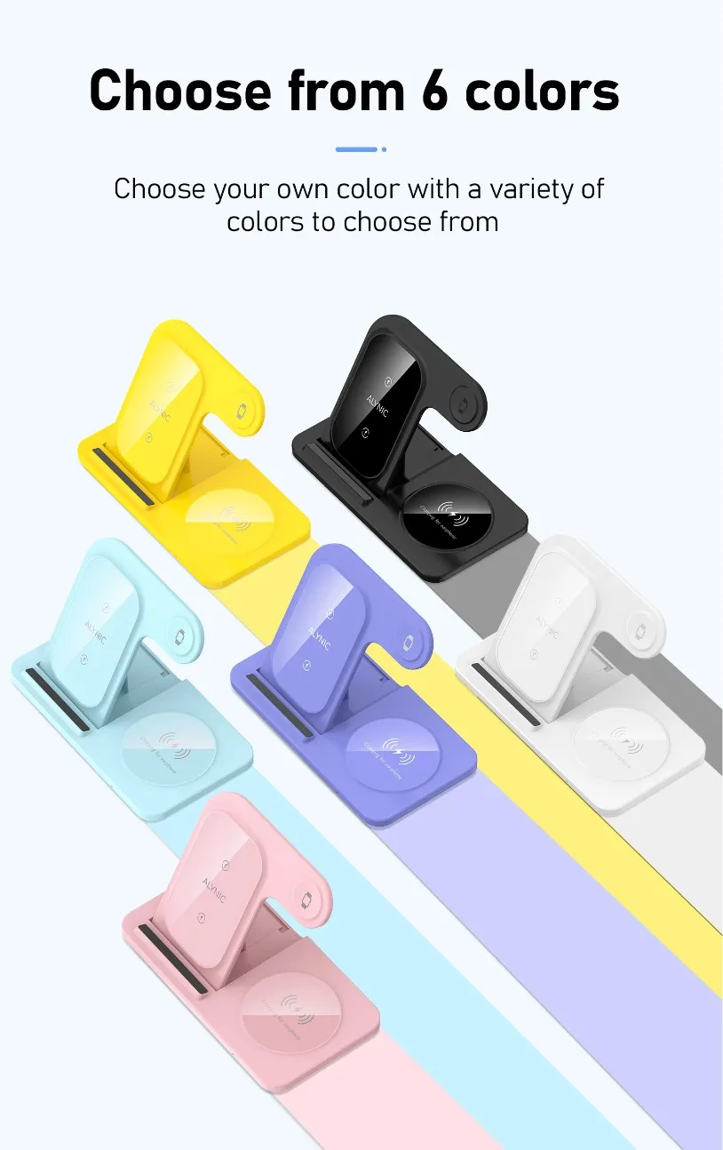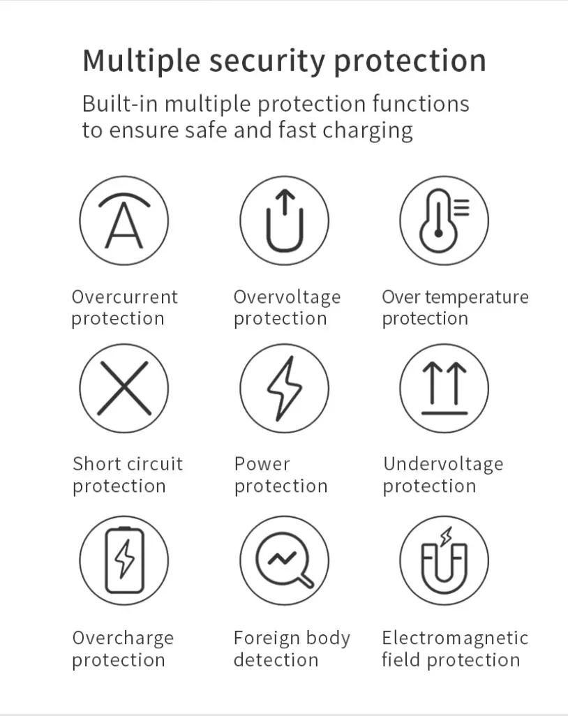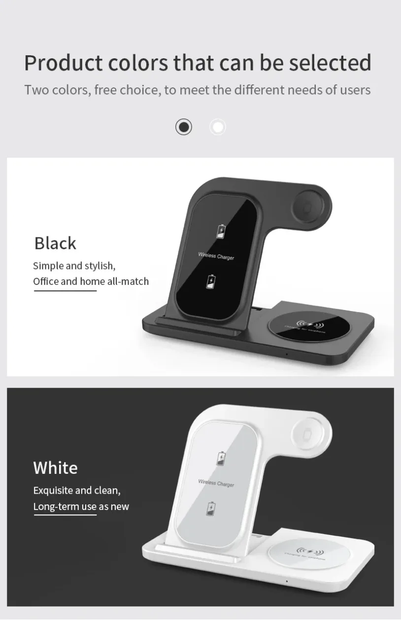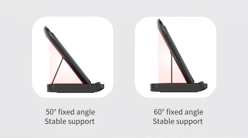 • Carga rápida:Con una potencia de salida máxima de 15 W, esta almohadilla de soporte para cargador puede cargar rápidamente sus dispositivos.