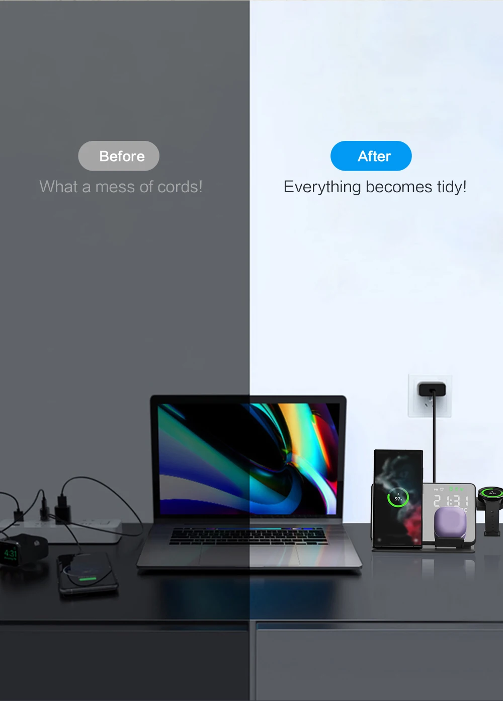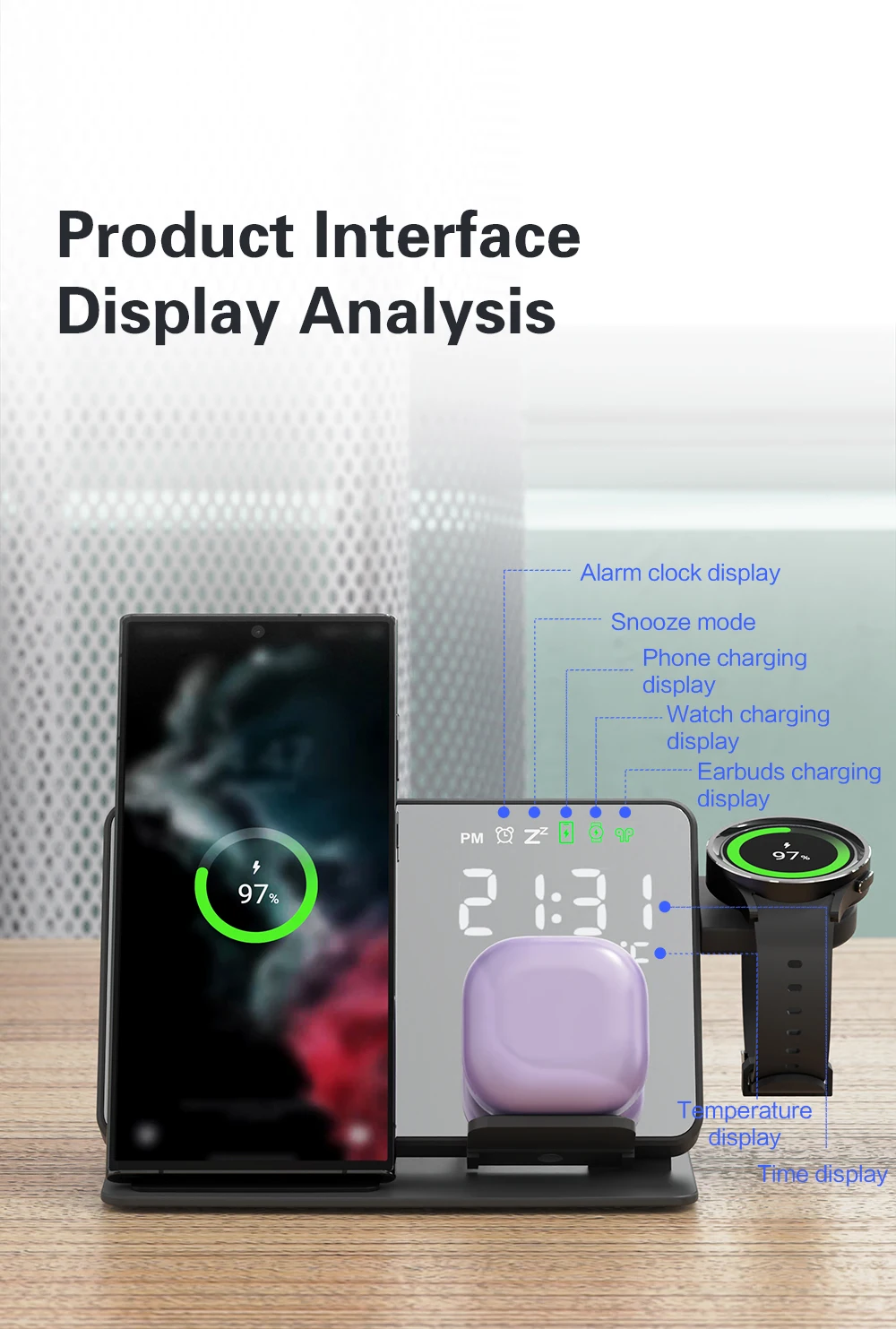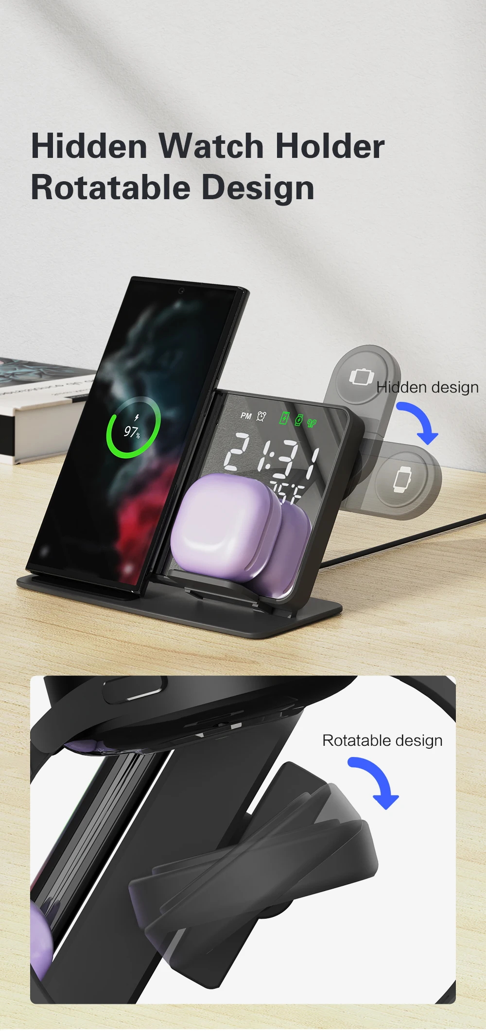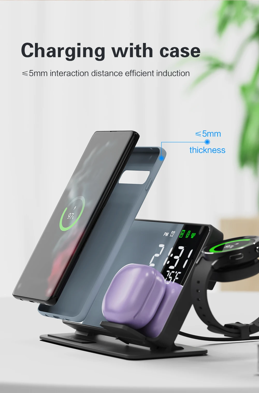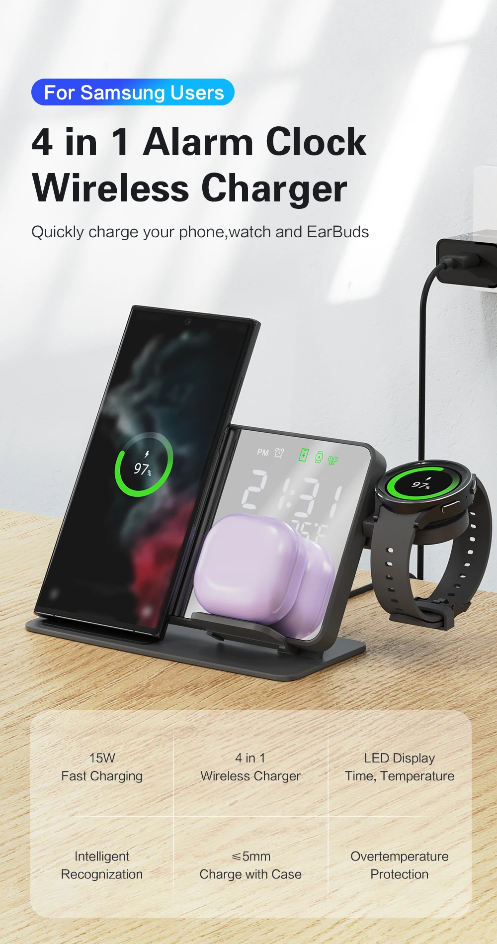 Comprar Soporte de cargador inalámbrico 3 en 1 para Samsung Galaxy S23 S22 S21 estación de carga Ultra rápida para reloj 5 Pro/5/4 soporte Buds 2