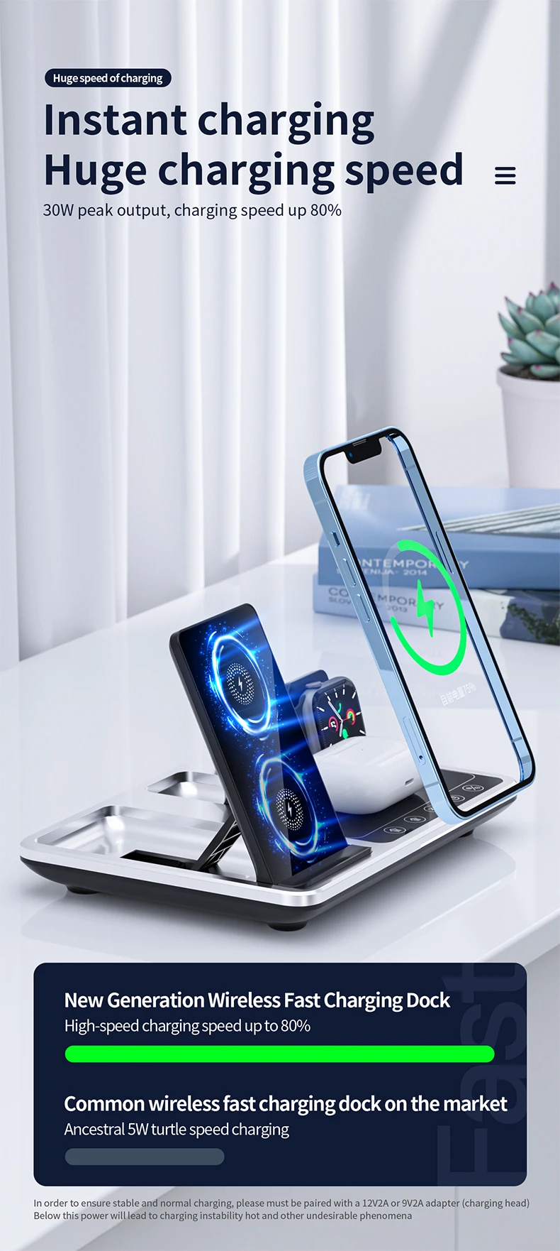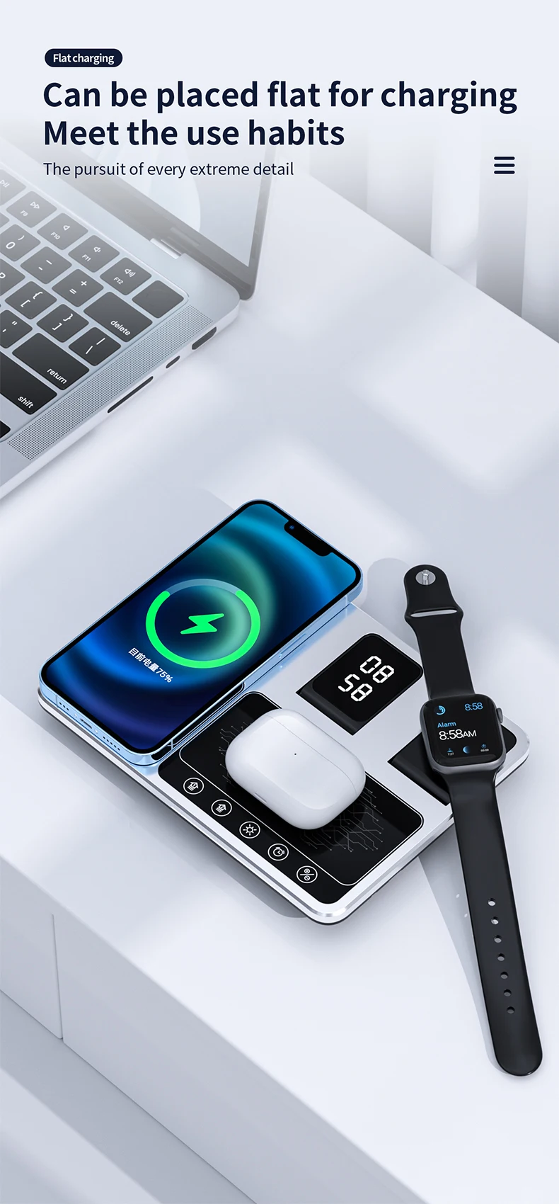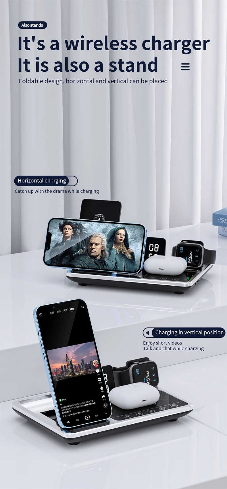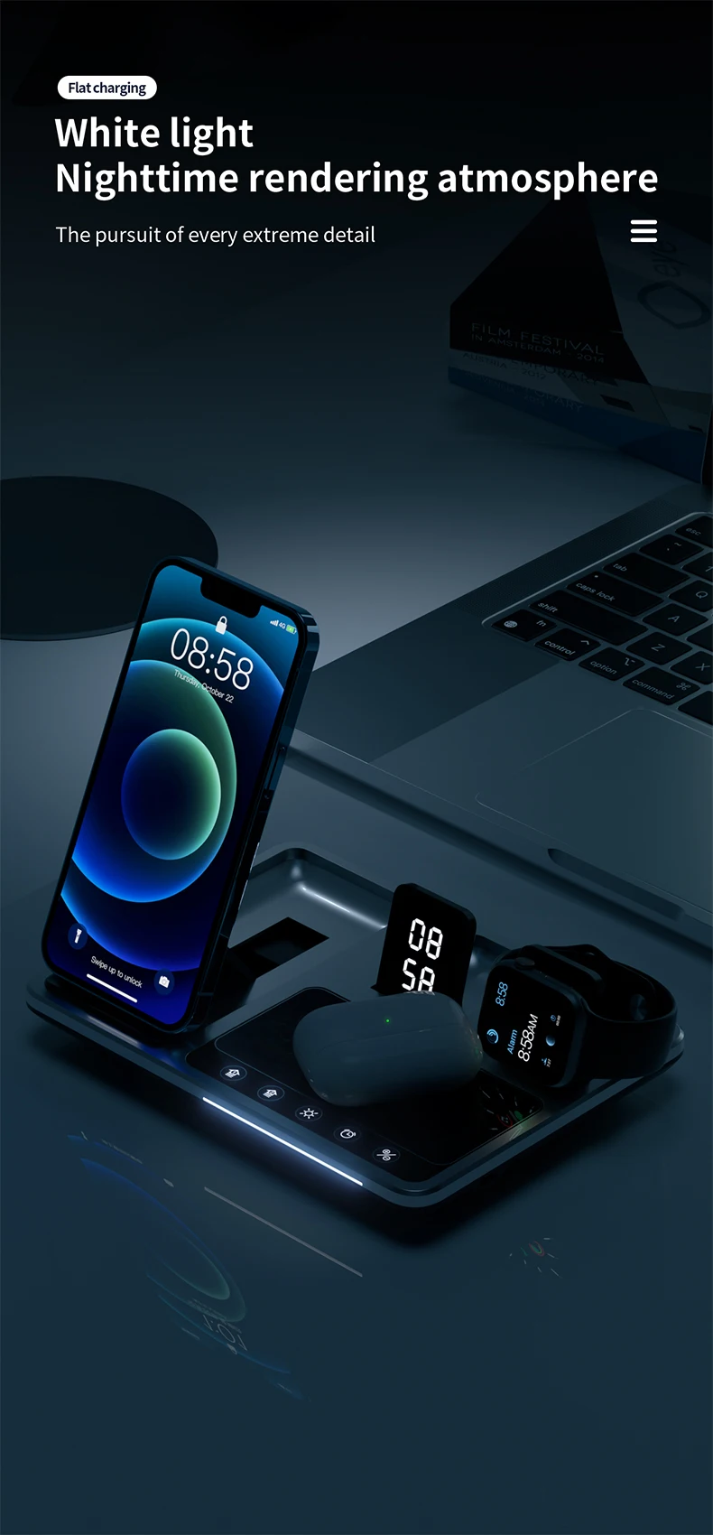 Soporte de cargador inalámbrico para reloj despertador 4 en 1 para Iphone 14 13 12 11 Pro Max 30W estación de carga de Control táctil para Airpods Apple Watch