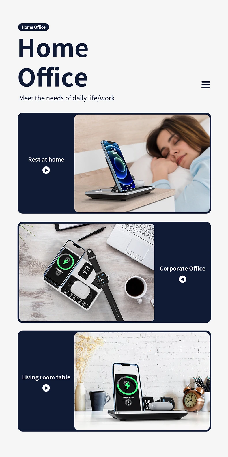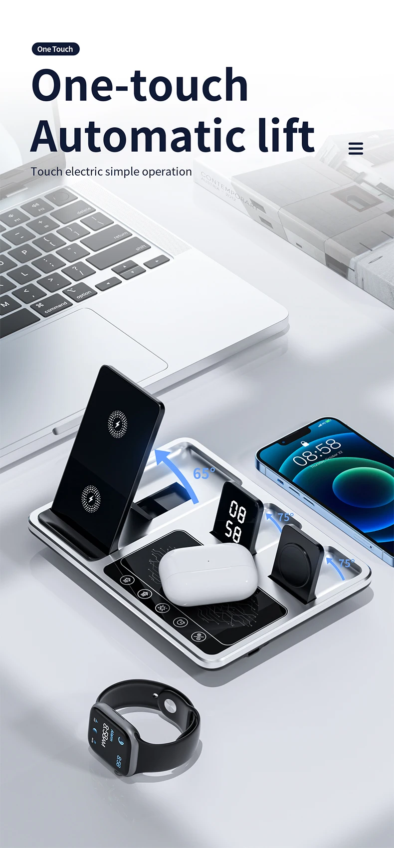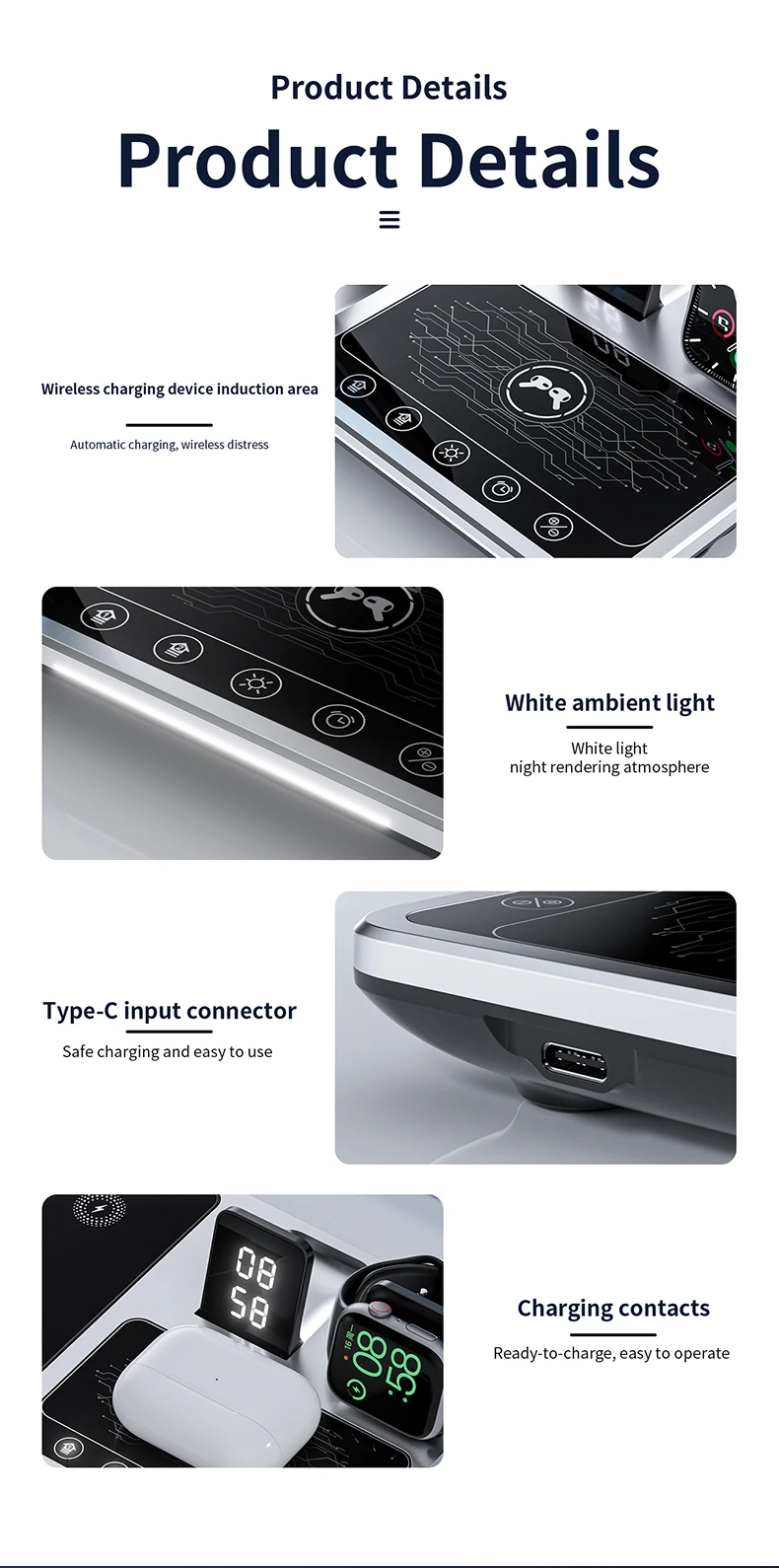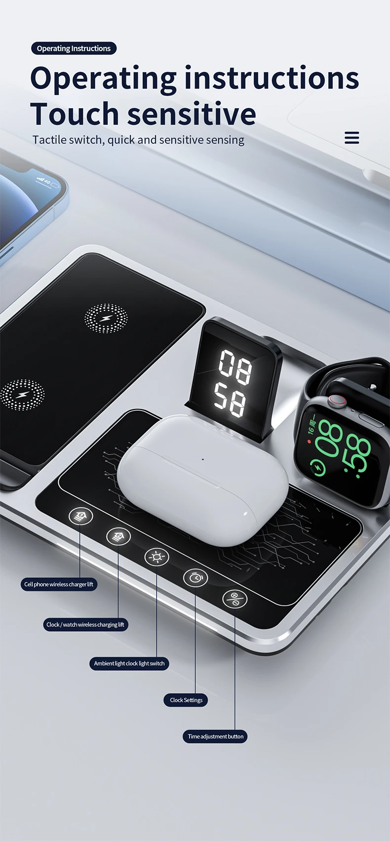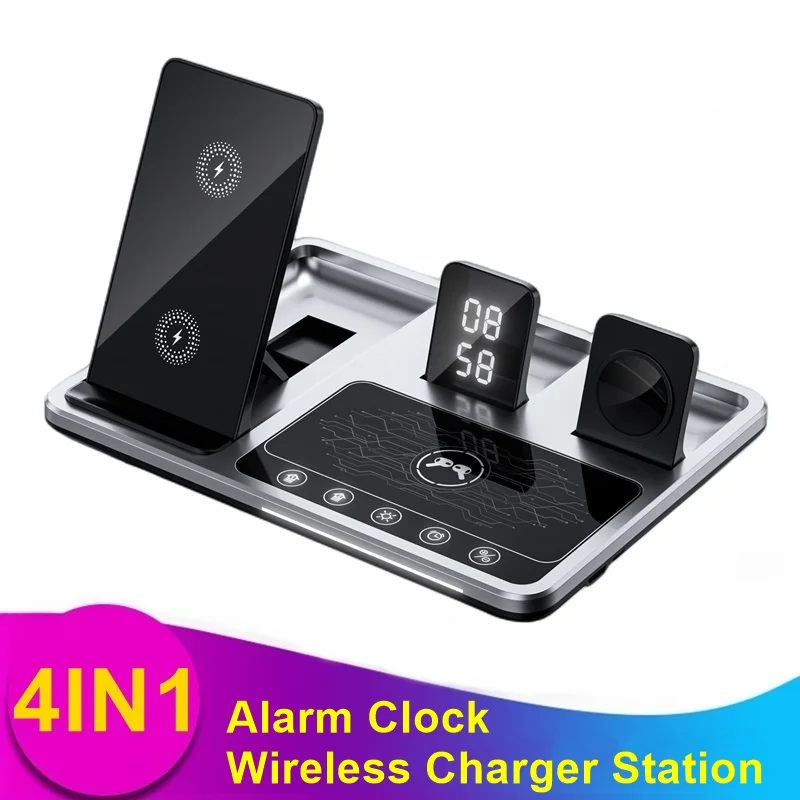 Soporte de cargador inalámbrico 4 en 1 para reloj despertador, estación de carga con Control táctil para Airpods, Apple Watch, Iphone 14, 13, 12, 11 Pro Max