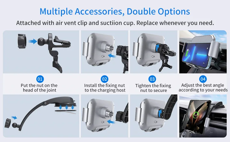5. El soporte de montaje del teléfono del coche más conveniente 15W Qi carga inalámbrica rápida, nunca se preocupe por su teléfono apagado de la batería baja.