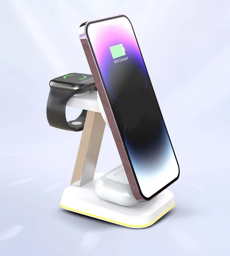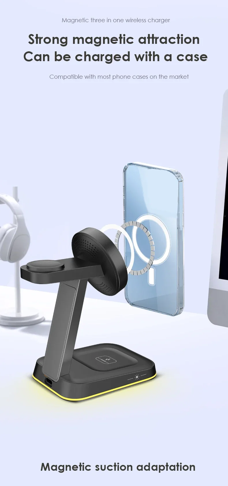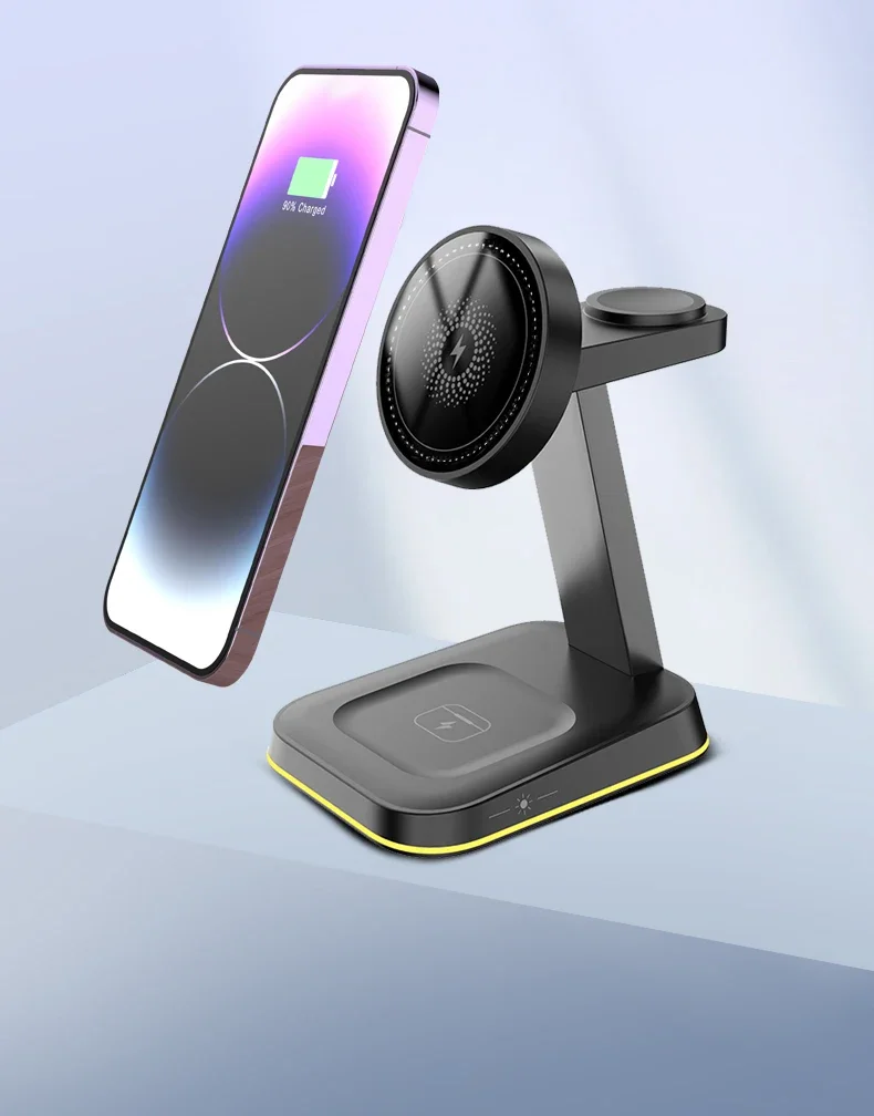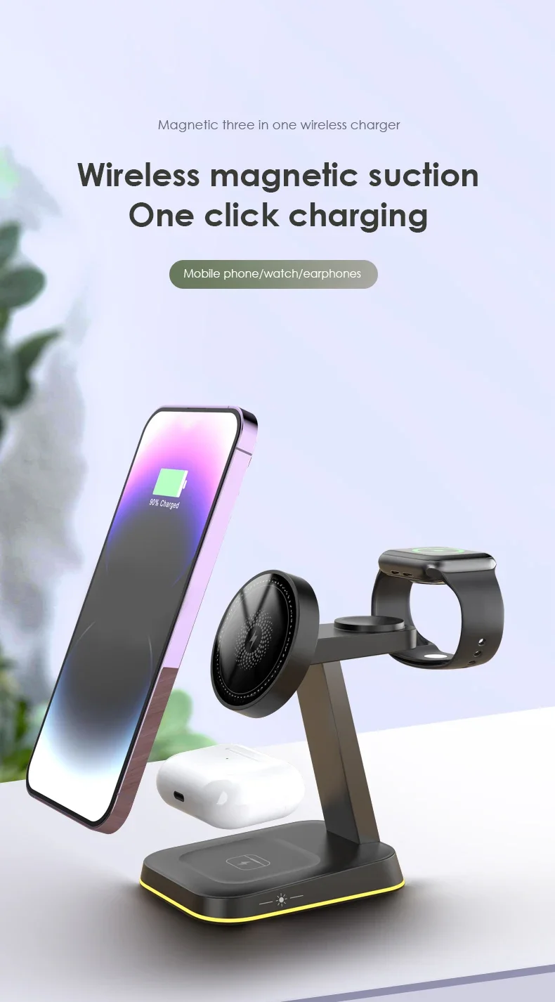 Comprar Soporte de cargador inalámbrico magnético 3 en 1, estación de carga rápida con luz LED para iPhone 15, 14, 13, 12 Pro Max, Apple Watch, Airpods