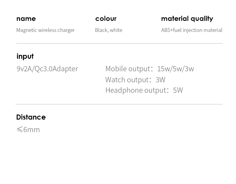 Para teléfono: 15W/10W/7,5W/5W(15W se cargará rápidamente que otros)