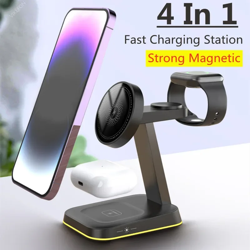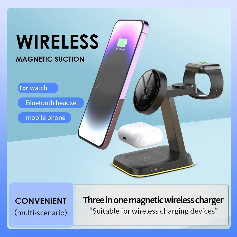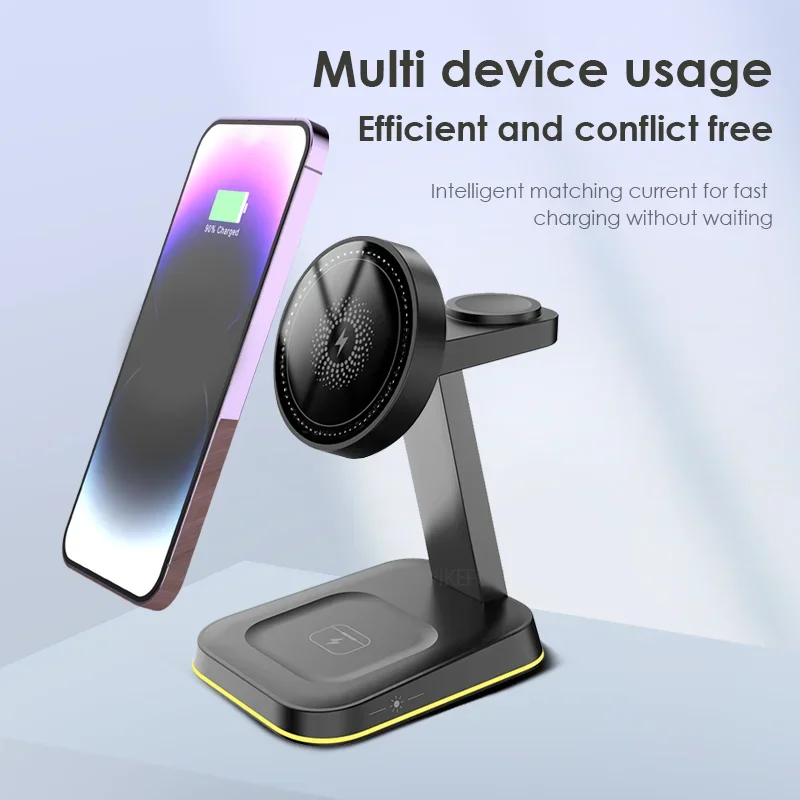 Comprar Soporte de cargador inalámbrico magnético 3 en 1, estación de carga rápida con luz LED para iPhone 15, 14, 13, 12 Pro Max, Apple Watch, Airpods