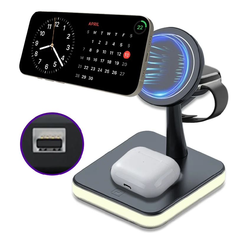 Comprar Soporte de cargador inalámbrico magnético 3 en 1 para iPhone 15 14 13 Pro Max Apple Watch 8 7 6 Airpods estación de carga rápida USB de inducción