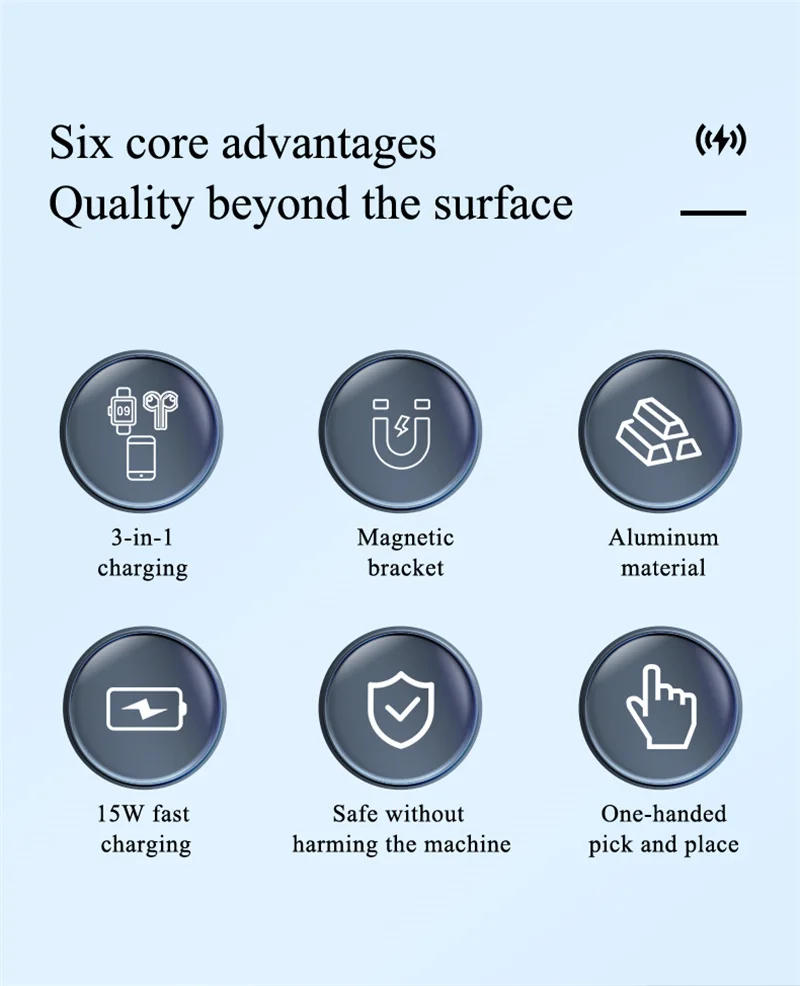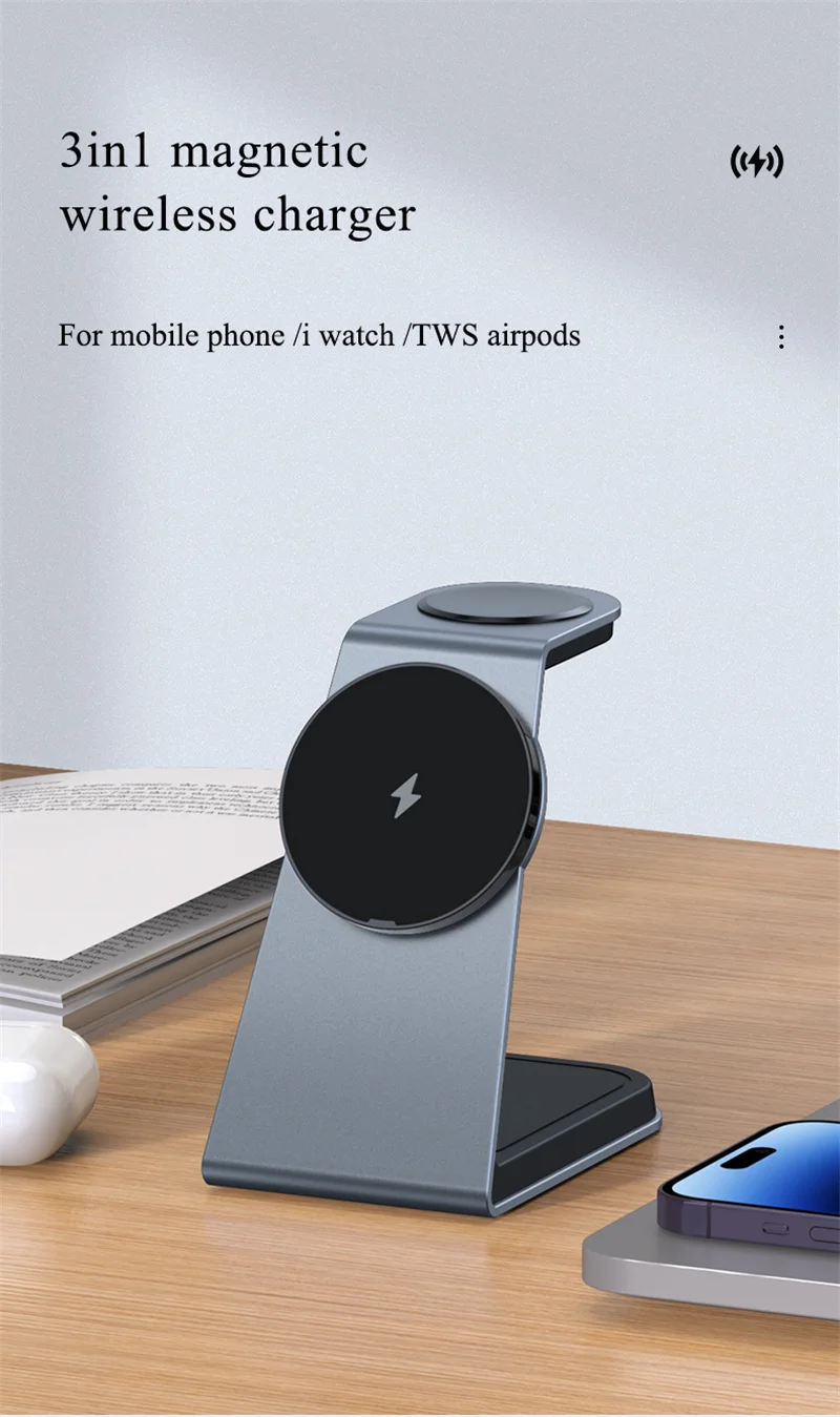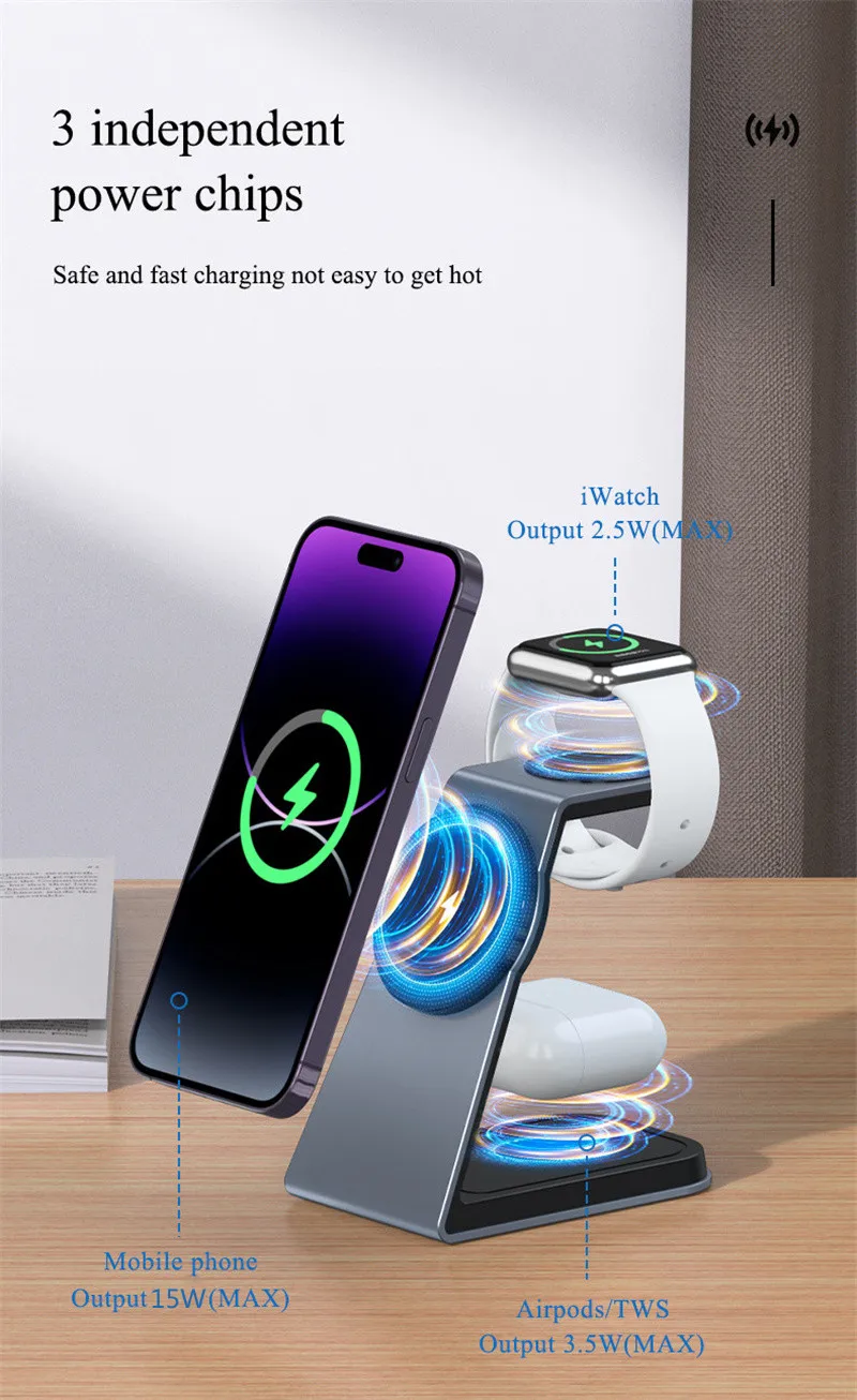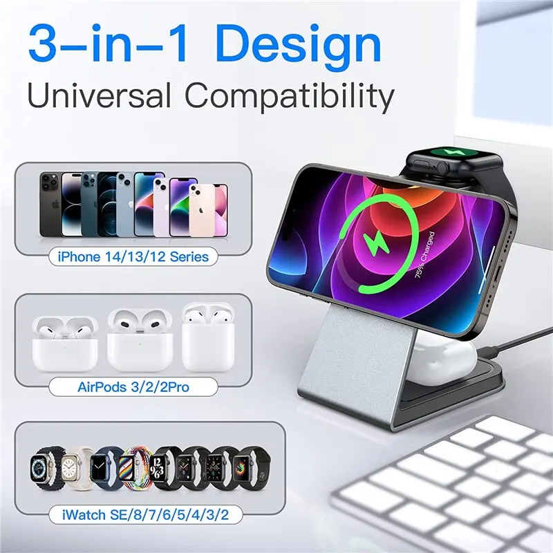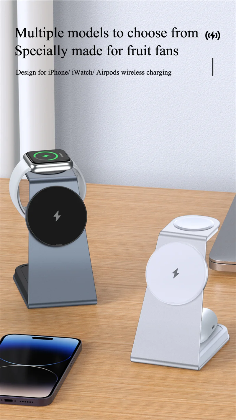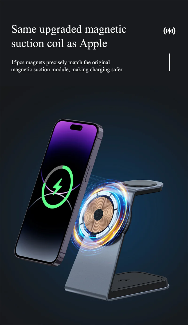 【Cargador inalámbrico 3 en 1 de aluminio】