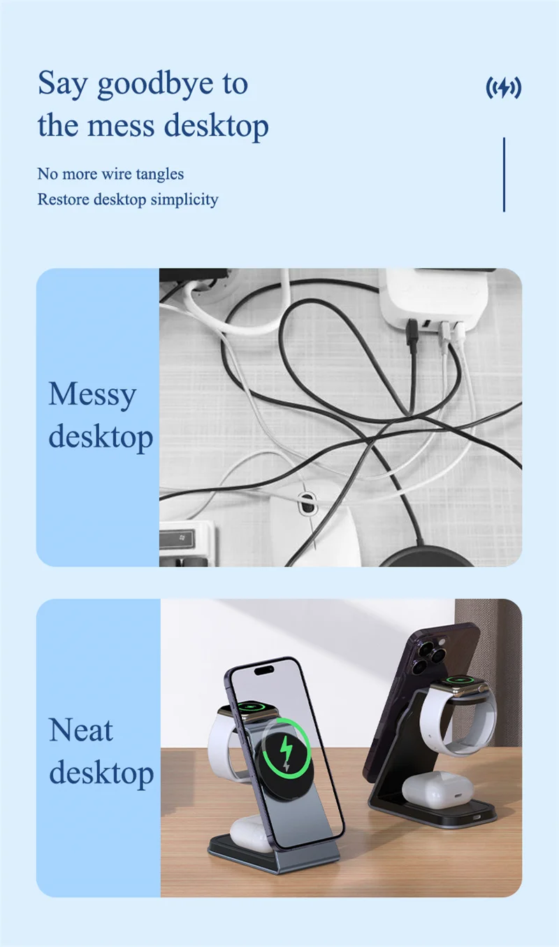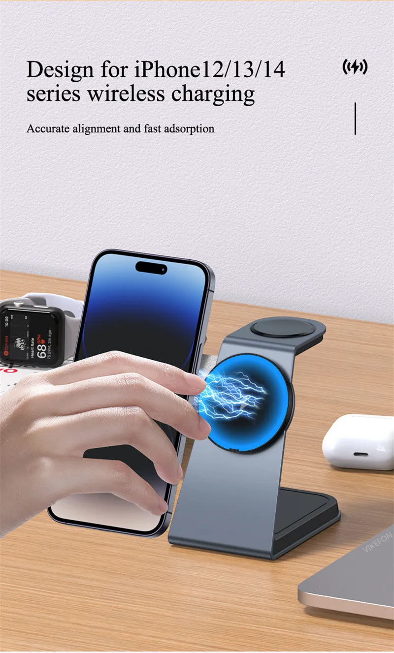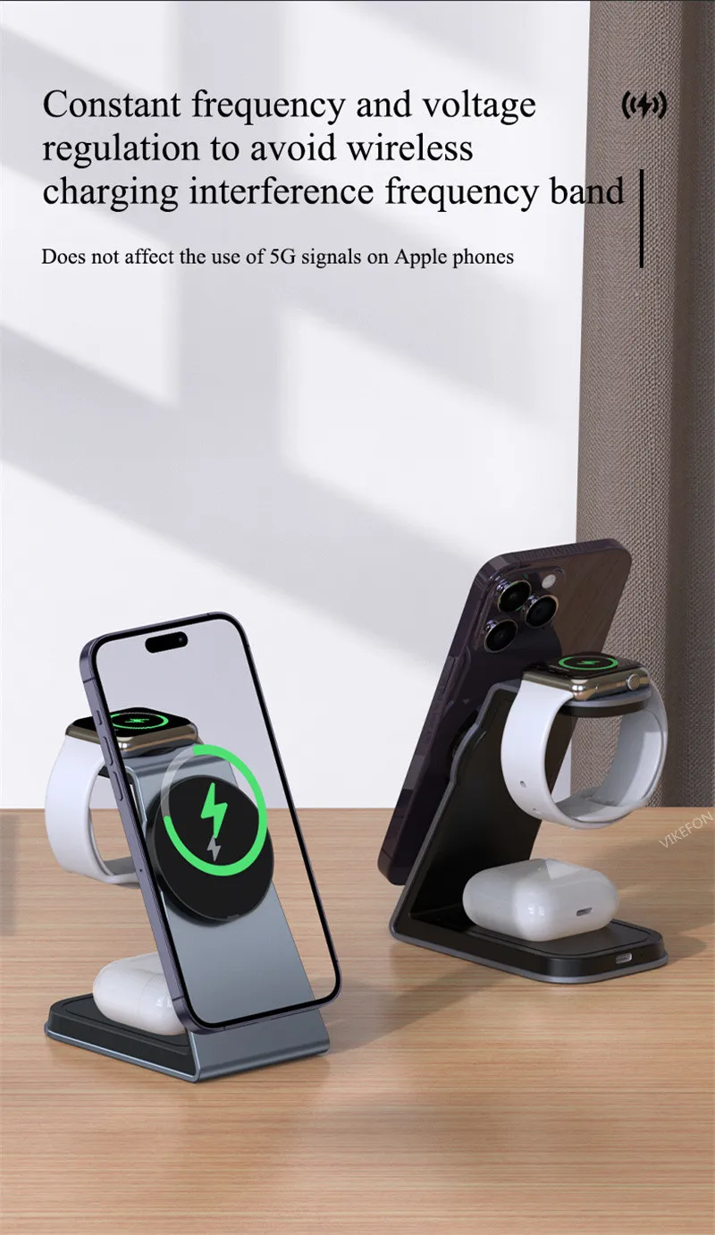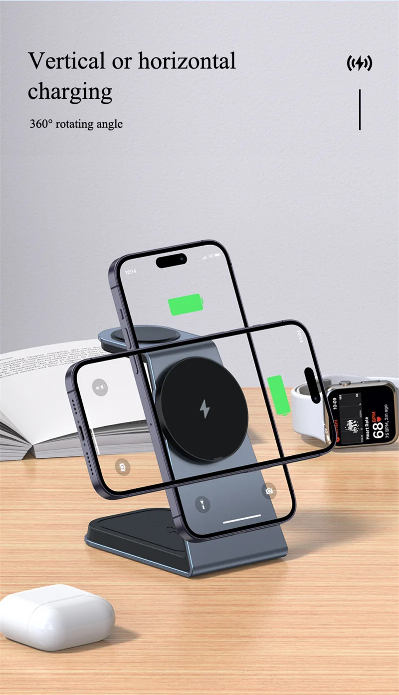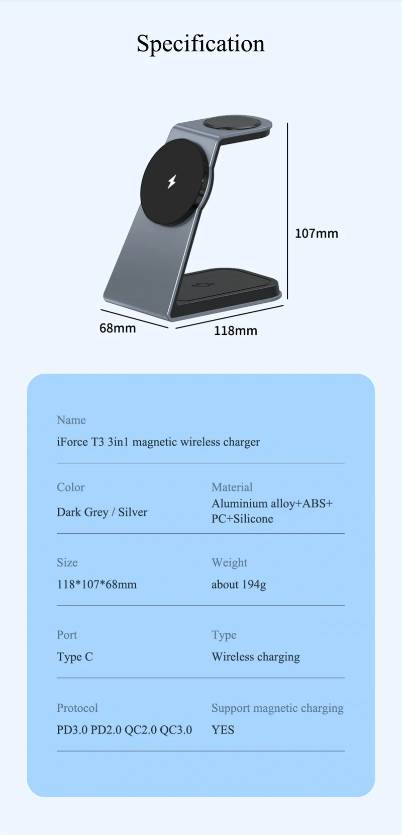 【Cargador inalámbrico 3 en 1 de aluminio】