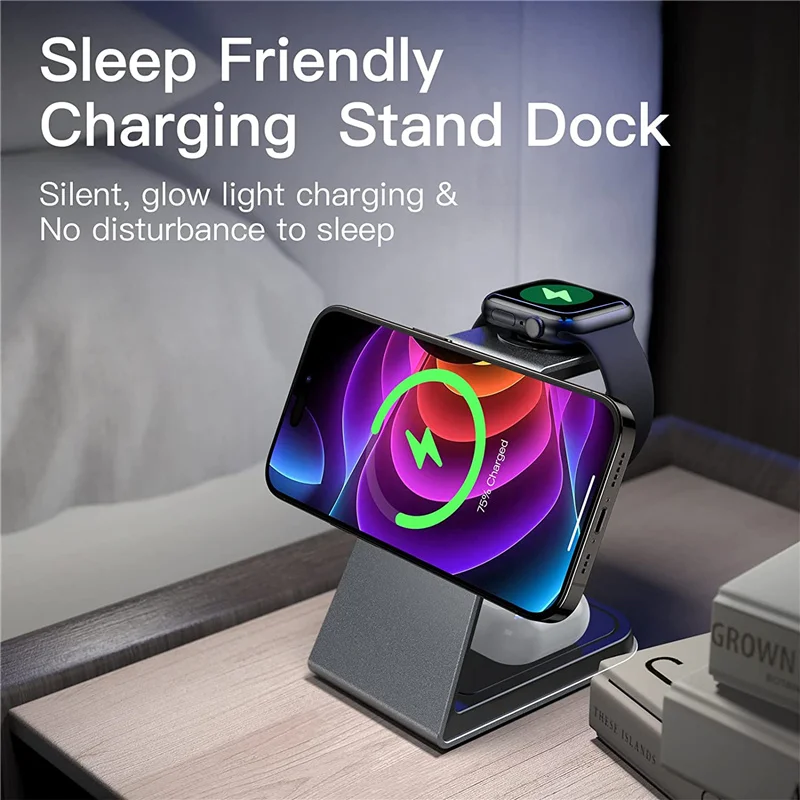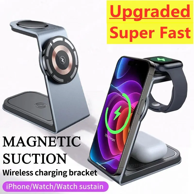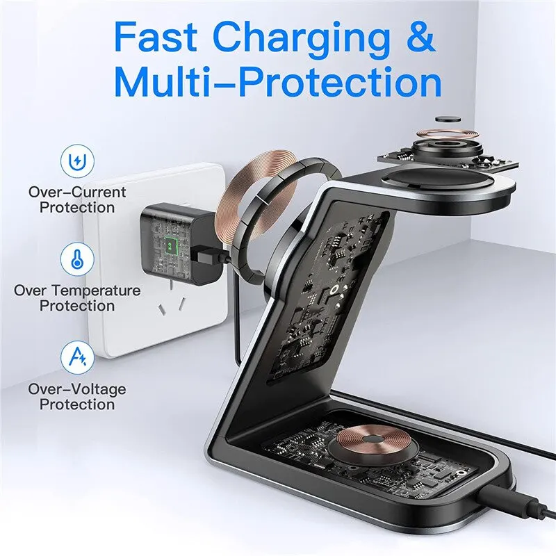 Comprar Soporte de cargador inalámbrico magnético 3 en 1, transparente, para iPhone 12, 13, 14 Pro Max, Apple Watch, Airpods, estación de carga rápida