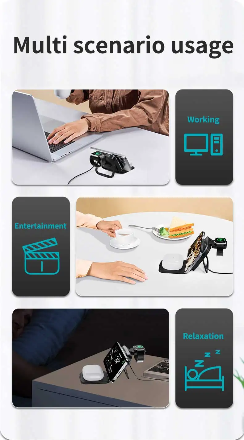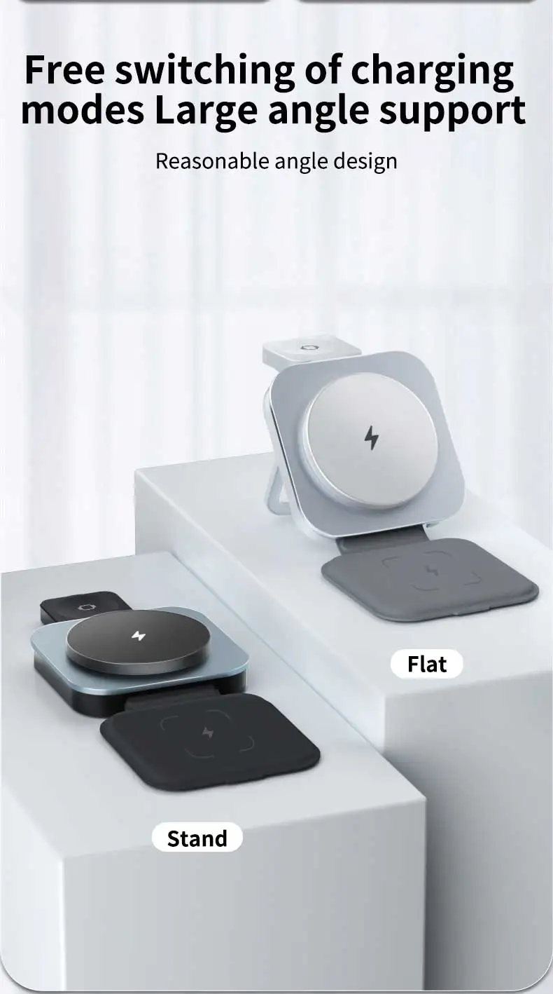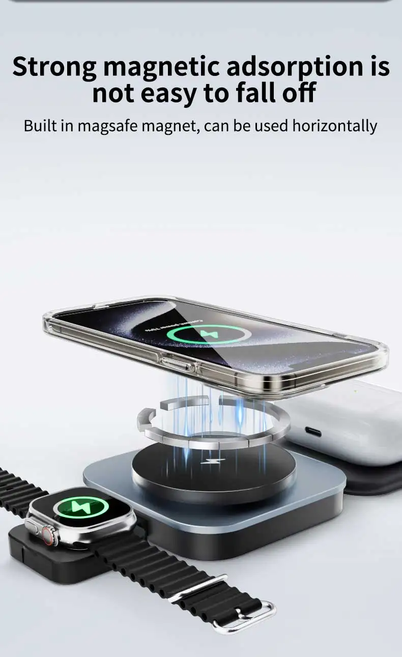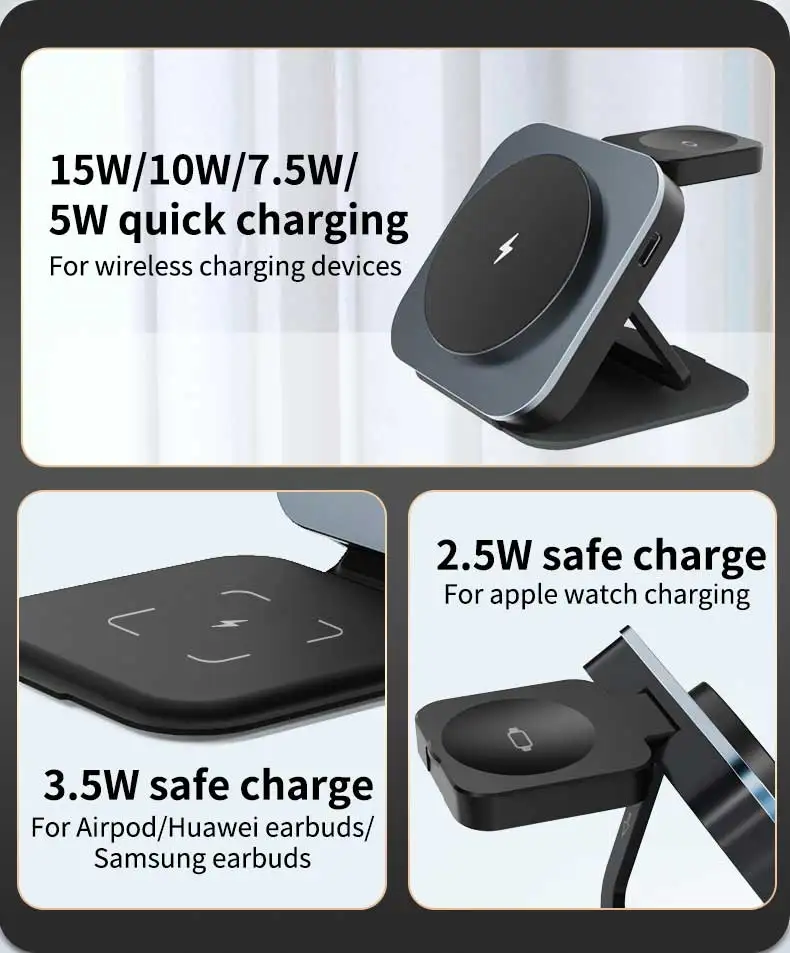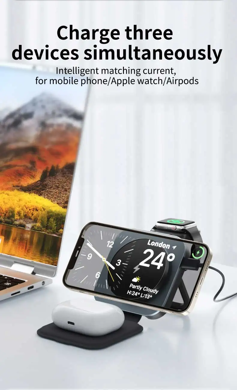 Soporte de cargador inalámbrico magnético plegable 3 en 1 Macsafe para iPhone 15 14 13 12 Apple Watch 8 7 6 Airpods estación de carga rápida