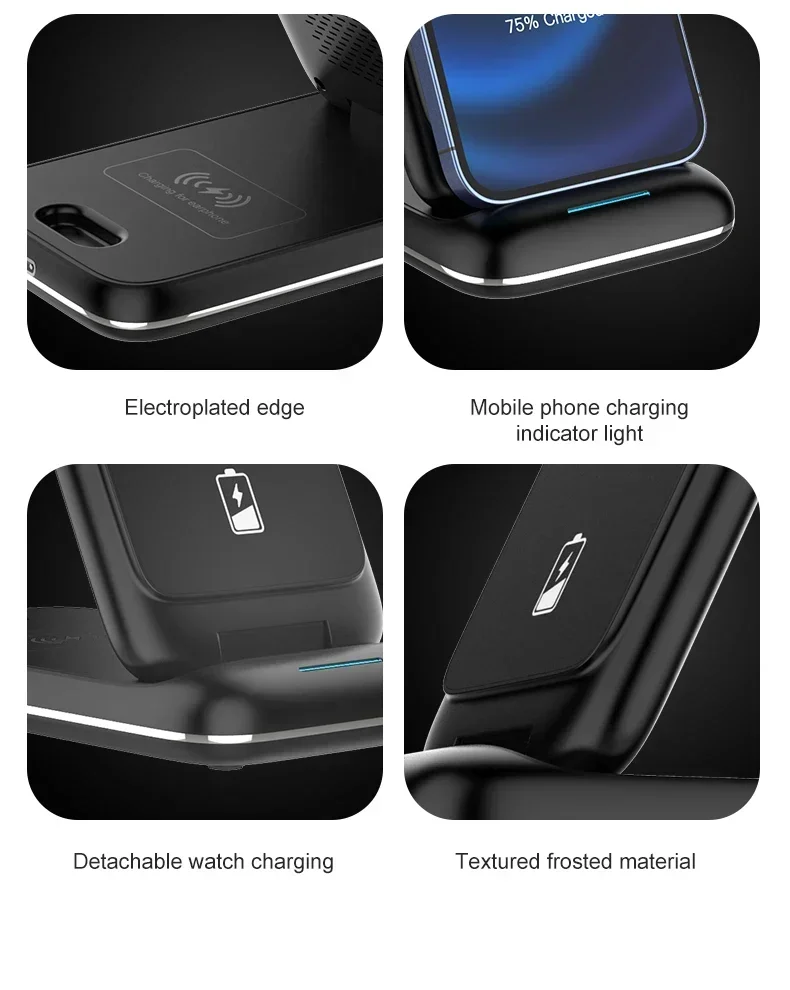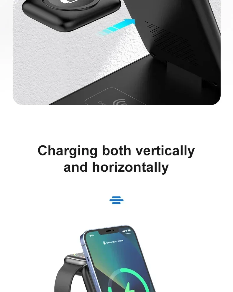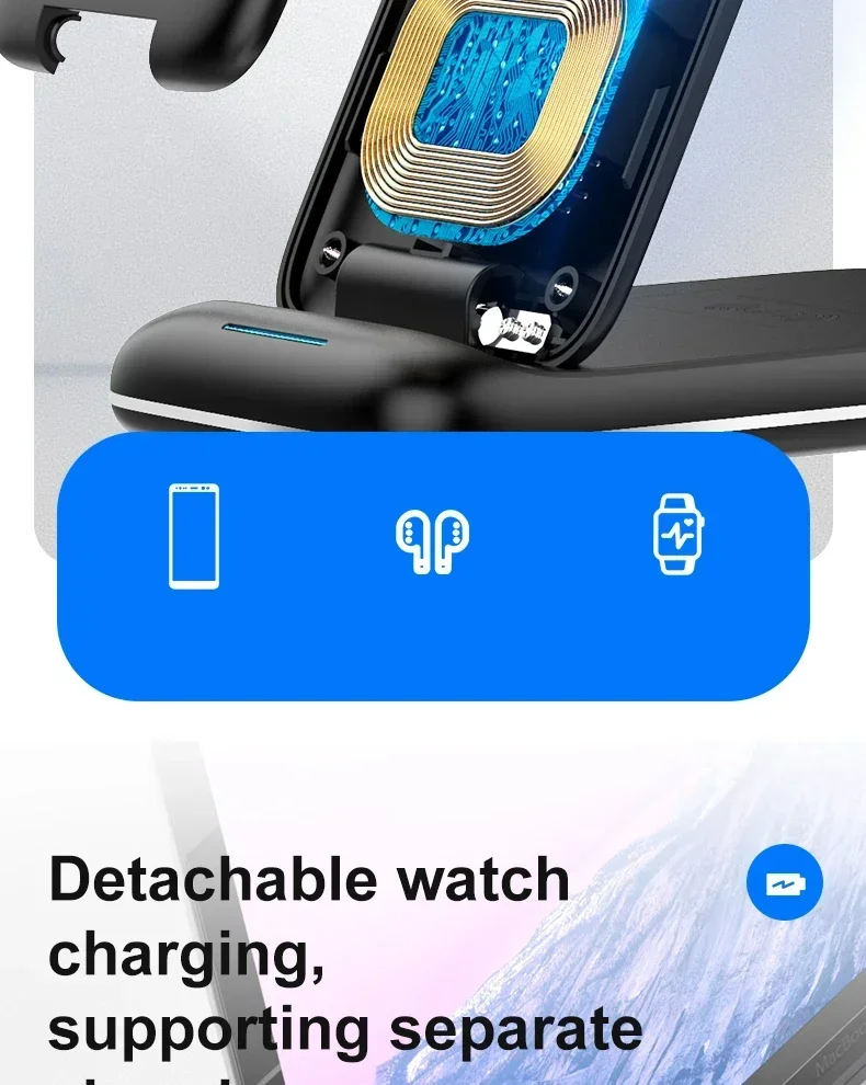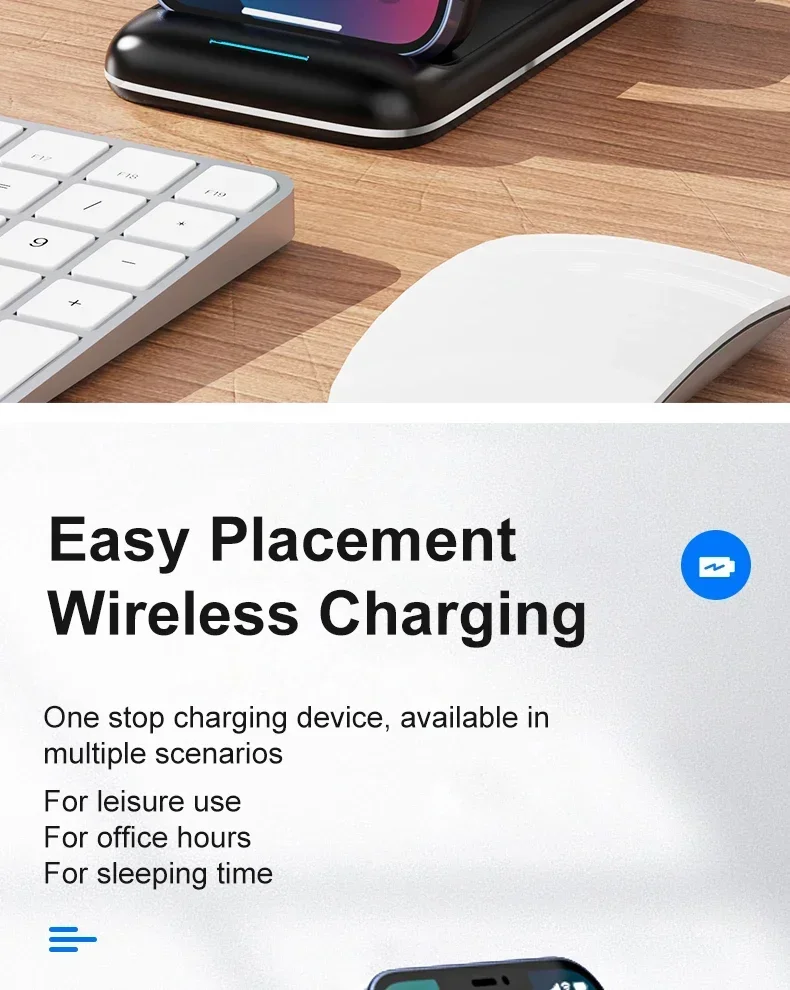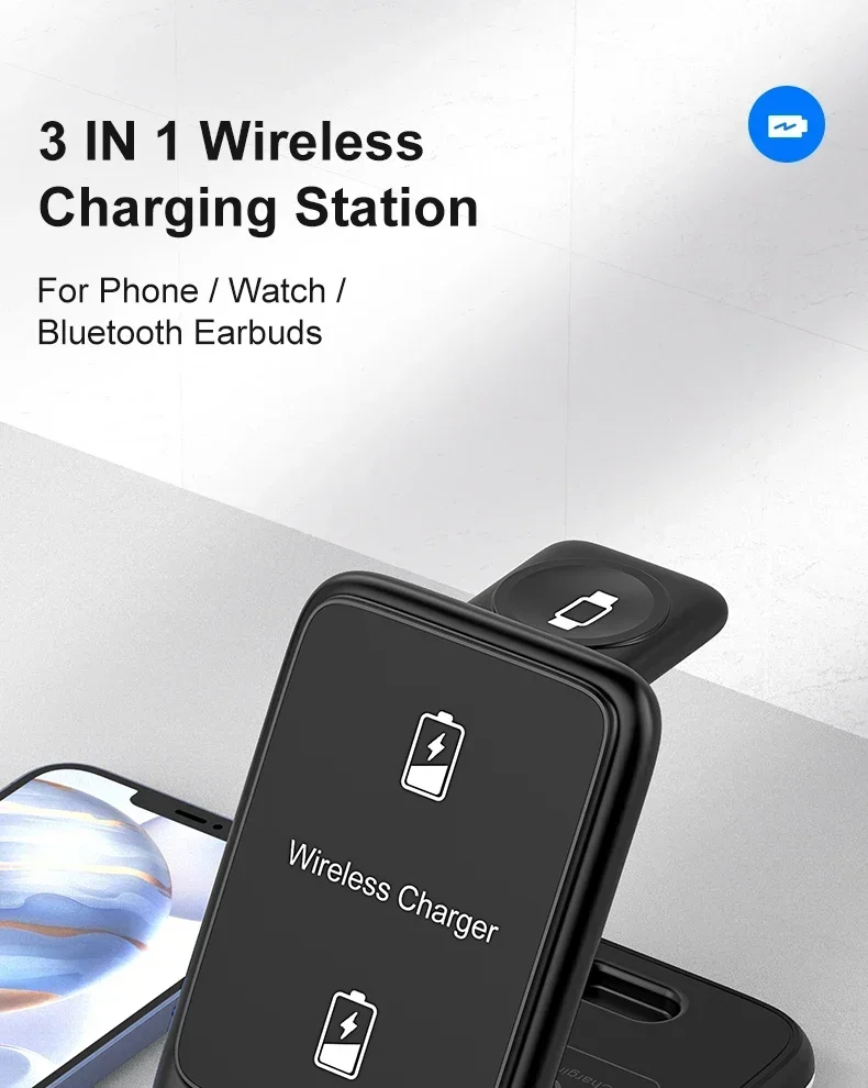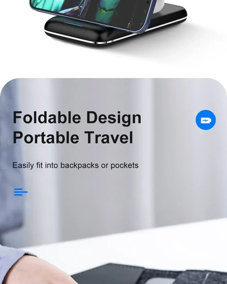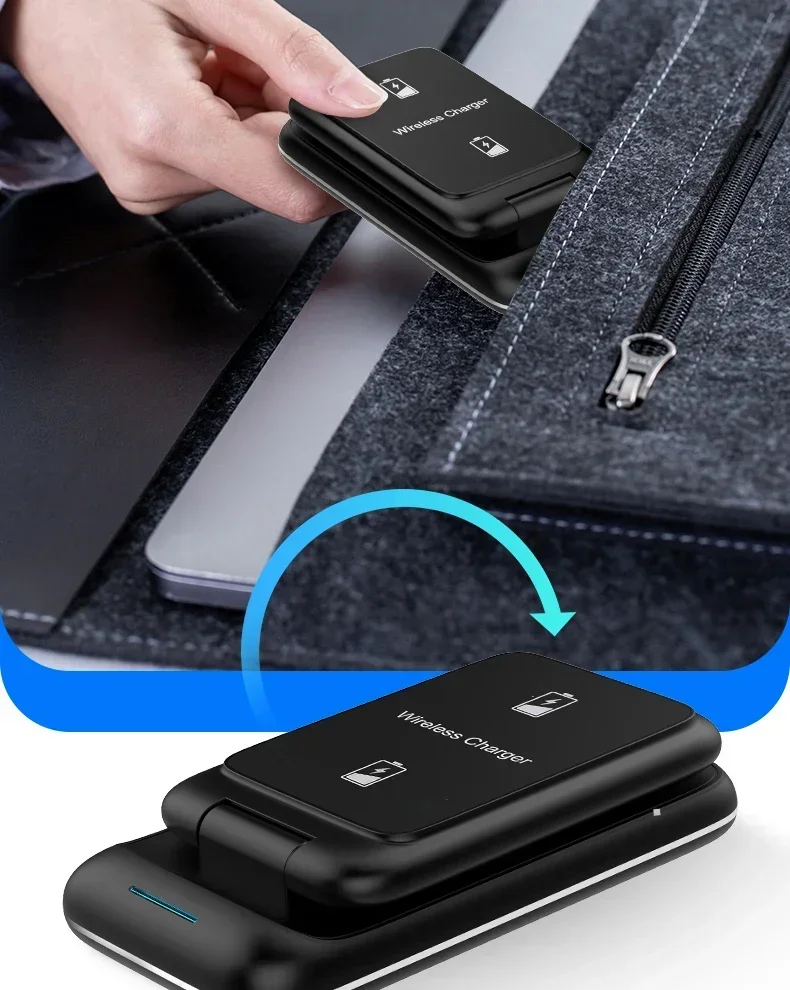 Features: * 3-IN-1 Fast Charging * Suitable For QI Charging Standard. * Foldable Wireless Charger as Holder for iPhone Samsung Huawei Xiaomi LG etc wireless phones.(Folding design, very convenient to carry )