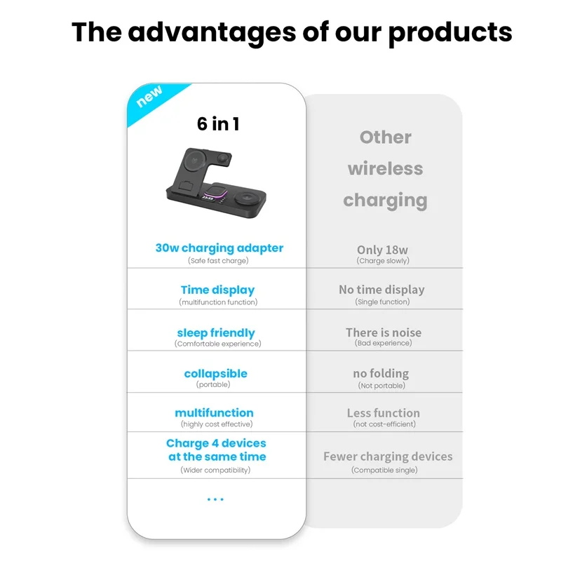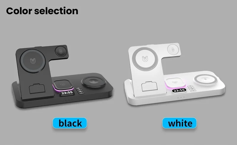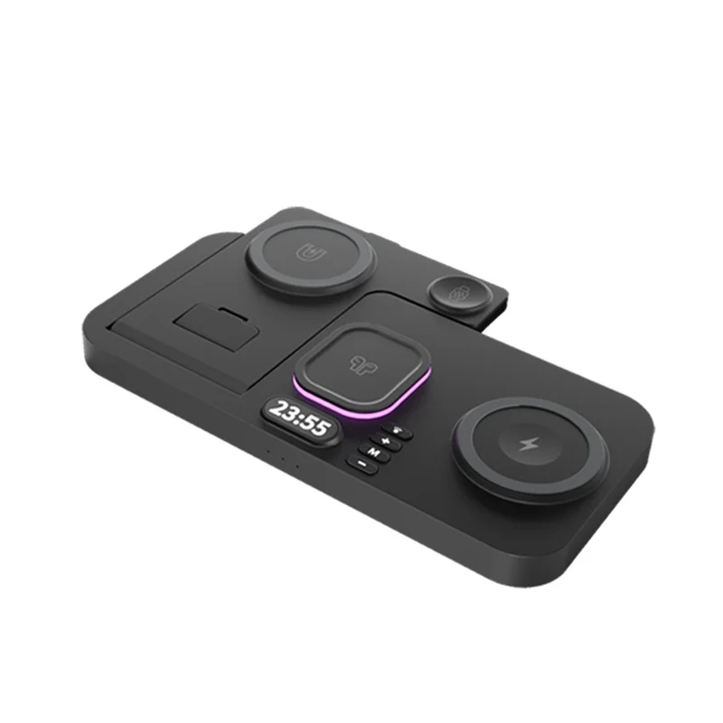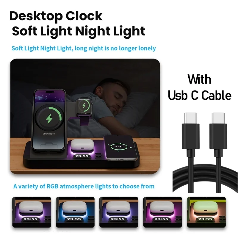 Soporte de cargador inalámbrico con reloj Digital para Iphone Samsung, estación de carga con luz ambiental para Airpods Pro Huawei Apple Watch