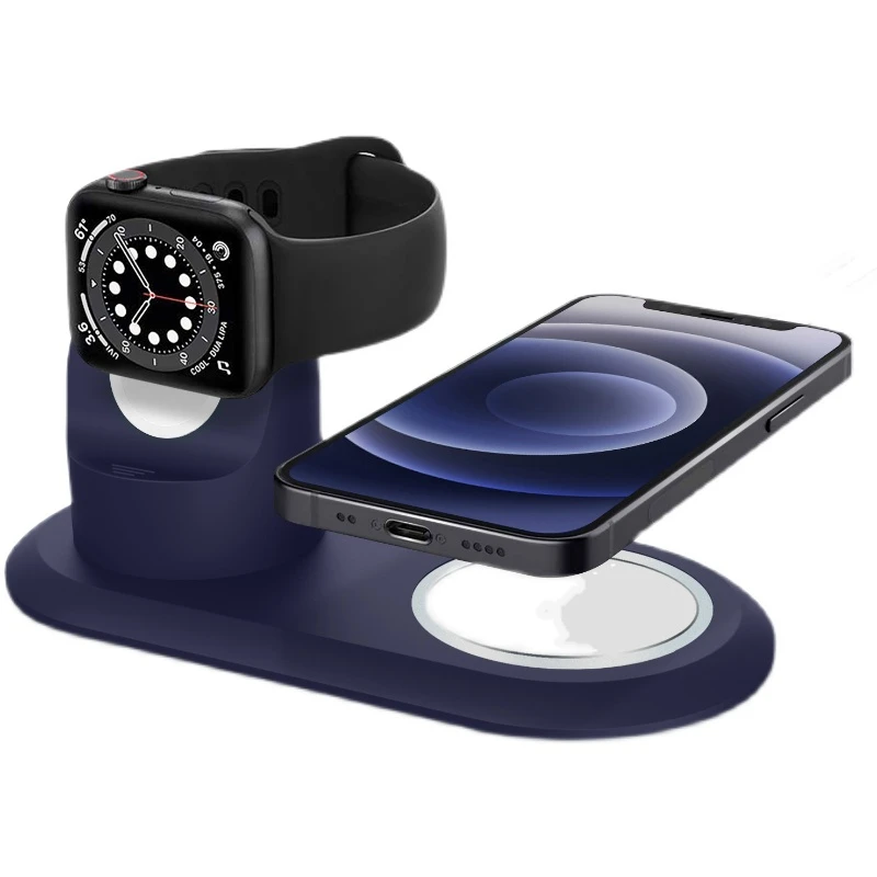Comprar Soporte de cargador de silicona para iPhone 12, 13, 14, estación de carga para Apple Watch Series 8, 7, 6, 5, 4, 3, 2, 1, 44/42, 40/38, 45/41