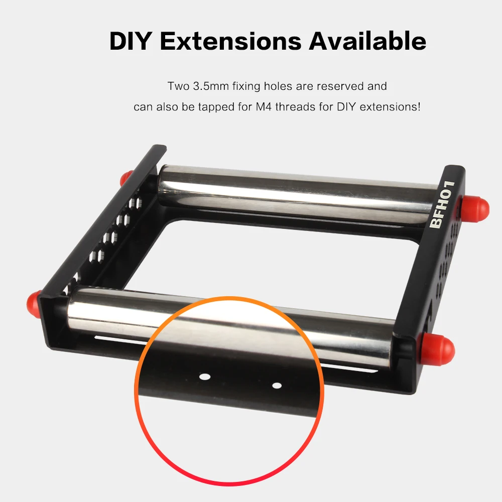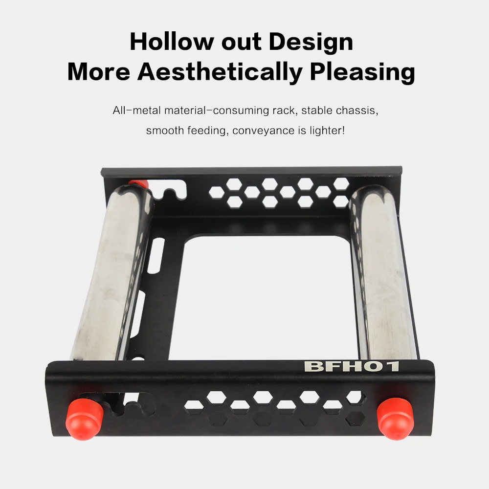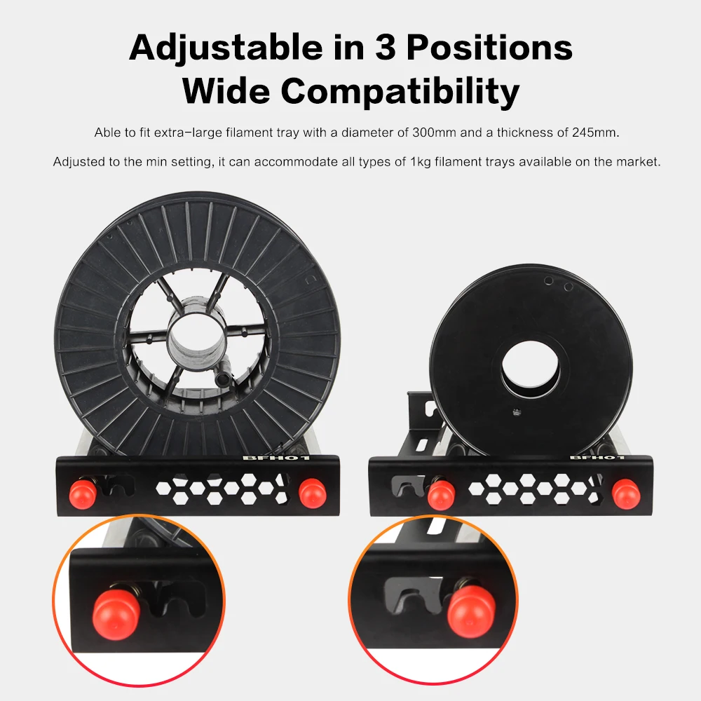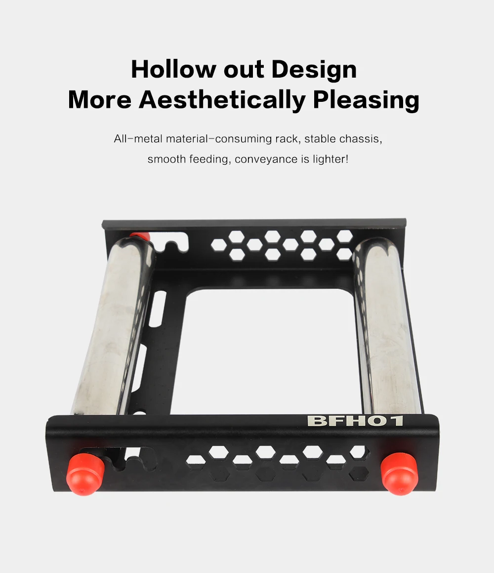¡El soporte de material BFH01 es realmente bueno para grandes rollos de consumibles! Otros soportes disponibles comercialmente suelen ser de solo 100g a 200g y es probable que se arrastren al alimentar material. Pero el soporte de stock BFH01 en sí pesa 1,3 kg y es todo metal. El Marco está plegado a partir de una placa de aleación de aluminio de 3mm de espesor, que está ahuecada en varios lugares por razones estéticas y para reducir los costes de transporte, de lo contrario el peso del marco sería de 3,2 kg. Rodillo en el soporte con un diámetro de tubo de acero inoxidable de 38mm, el eje de rodadura interno utiliza cojinetes de transmisión y eje de metal auxiliar de 8mm de diámetro, alimentación más suave. Solo el coste de los materiales metálicos ha alcanzado los 14USD. Además, el marco del producto está pulido con arena y oxidado, hermoso y atmosférico. Es muy adecuado para rollos grandes de consumibles, como 3kg, 5kg, incluso 10kg no son ningún problema. Unas pocas palabras para describir que es muy estable, fuerte compatibilidad, cualquier consumible puede coincidir con el soporte.