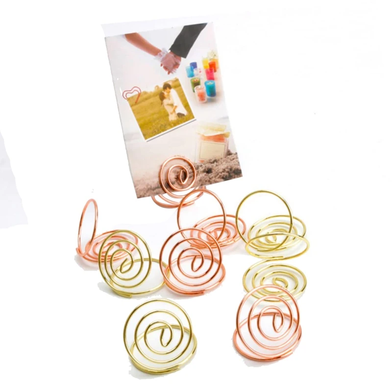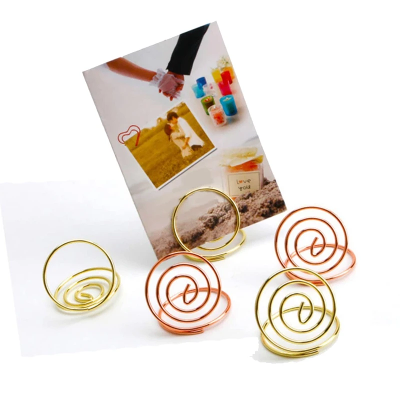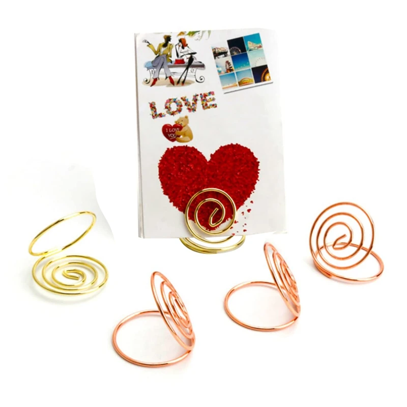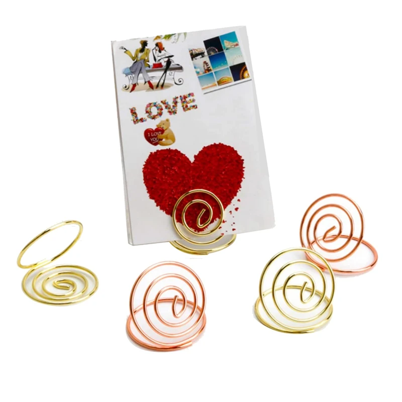 Soporte de escritorio de acero inoxidable: diseño elegante: bonitos clips de fotos de escritorio con soporte en forma de corazón y base en espiral.